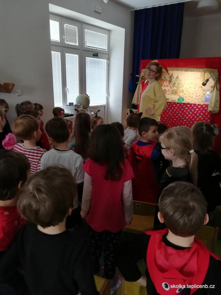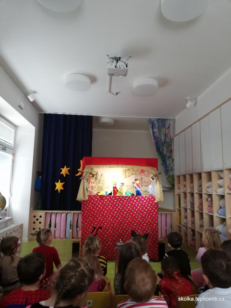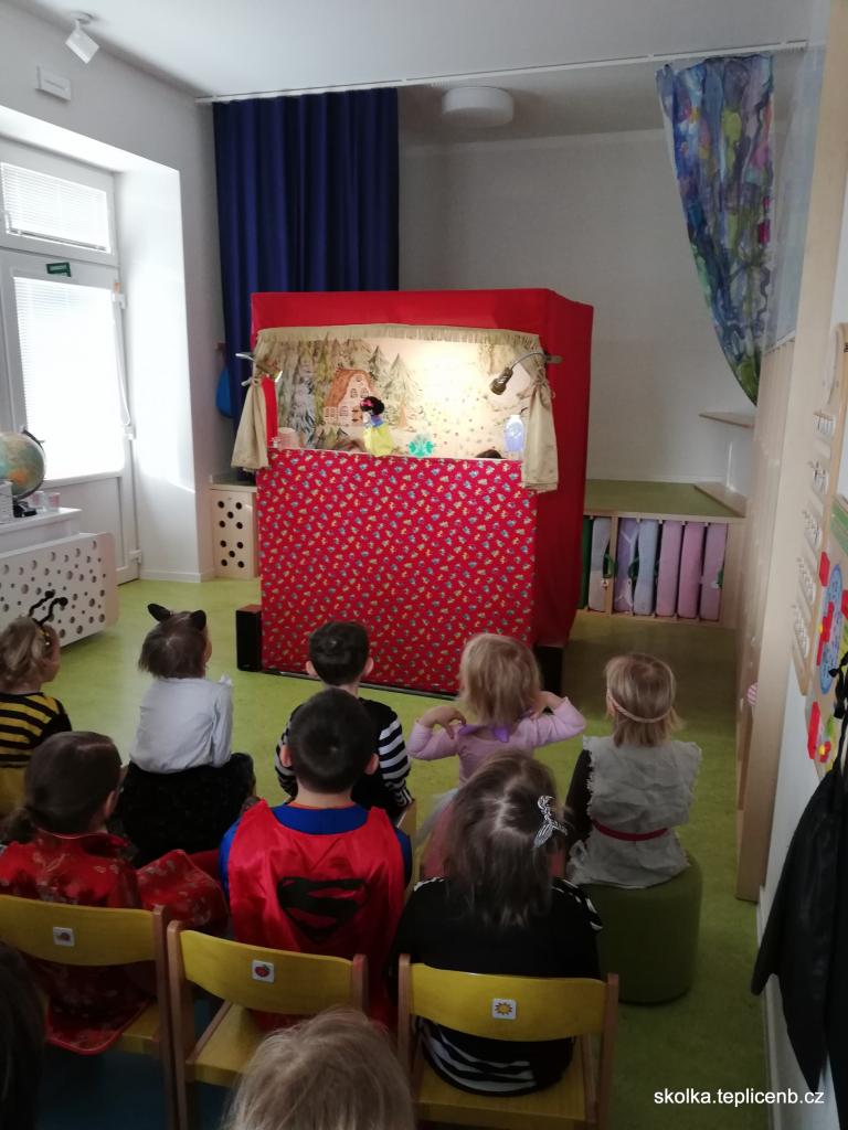 Známý příběh o Sněhurce, trpaslících, kouzelném zrcadle a zlé maceše ožil v naší MŠ, a to díky loutkovému divadlu, které k nám zavítalo časně z rána.