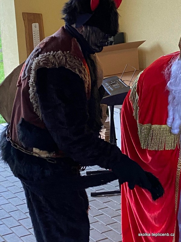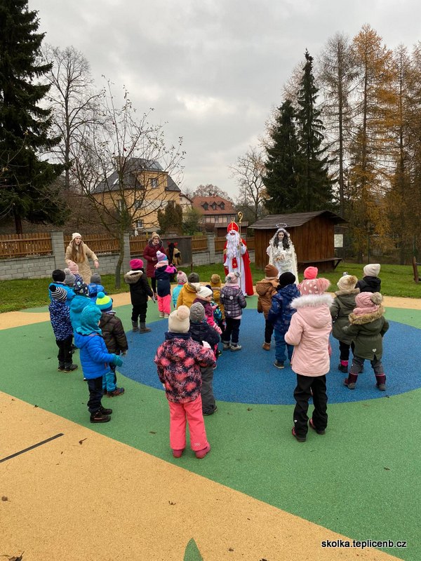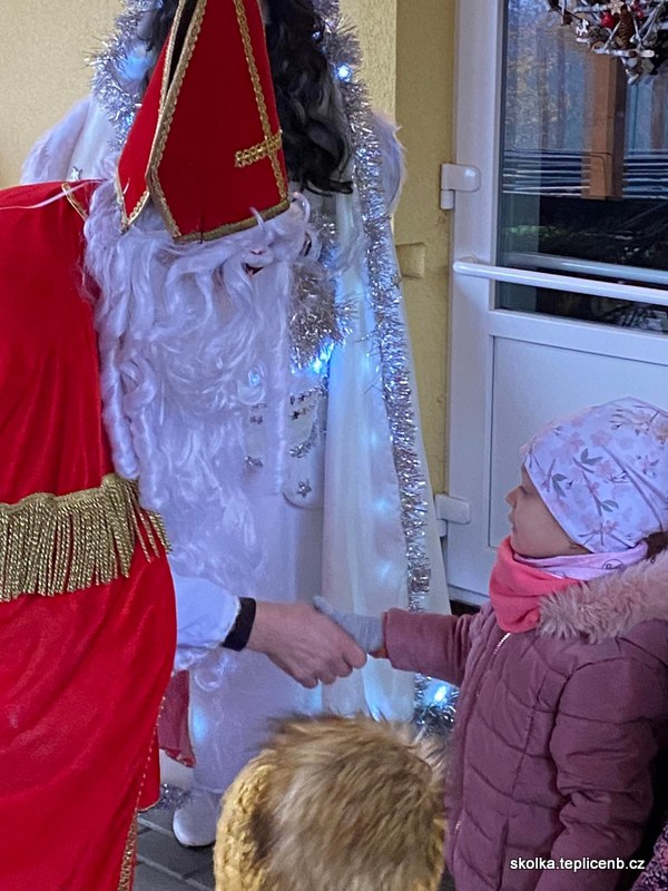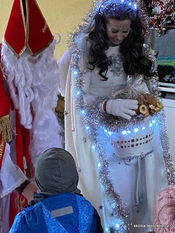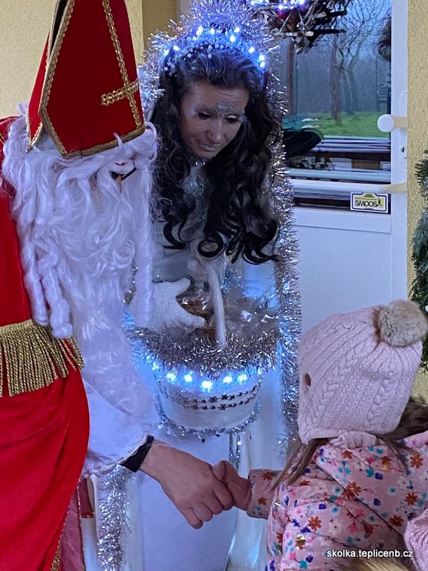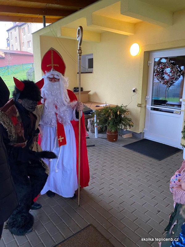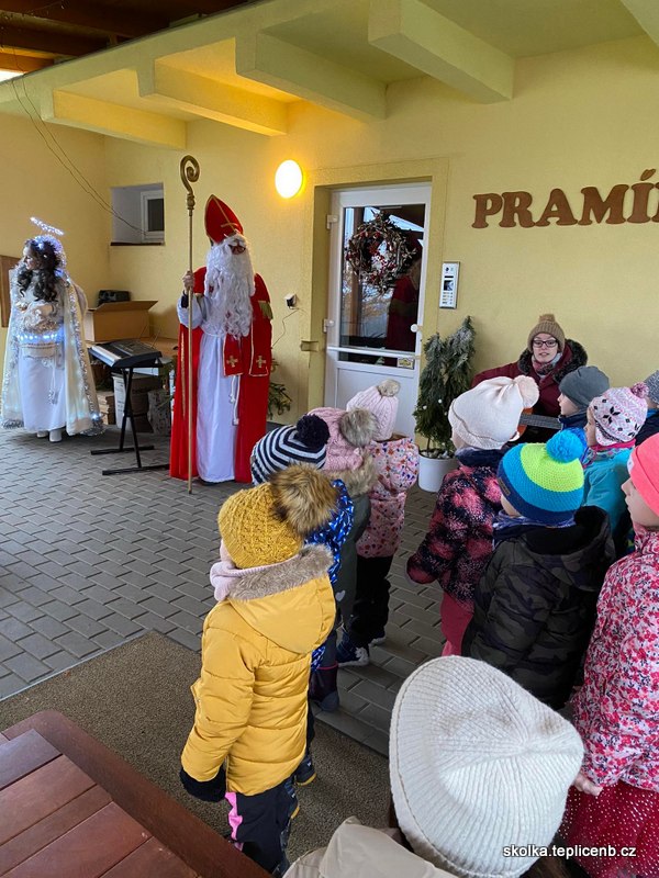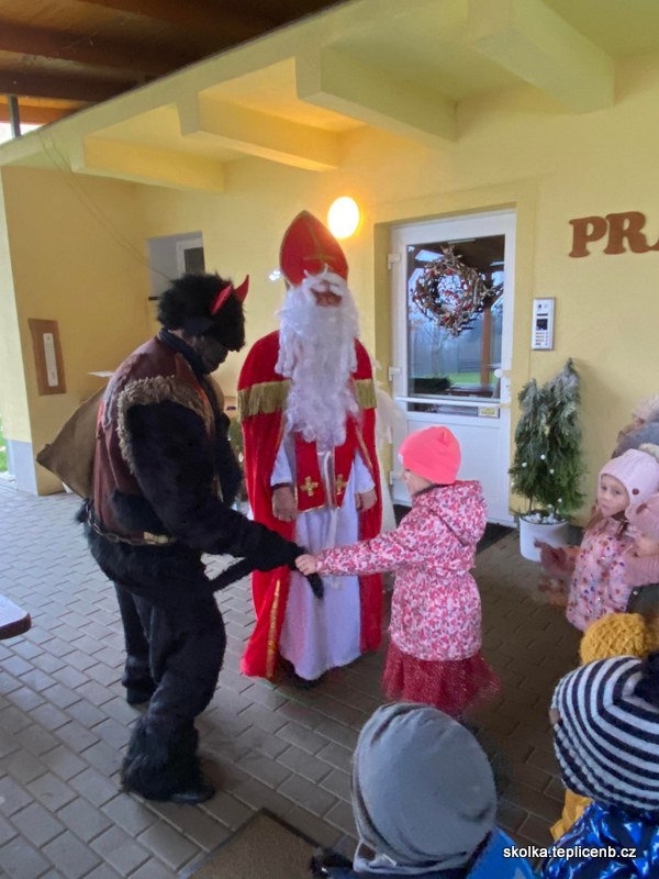 Dne 5.12.2022 zavítal do naší školky Svatý Mikuláš, umouněný čert a sněhově bílý anděl. Děti předvedly pásmo písní a básní a odnesly si sladkou odměnu v podobě perníčků a sušených jablek.