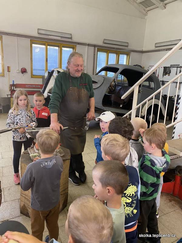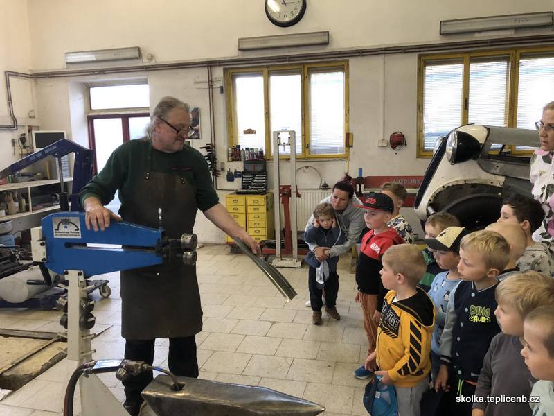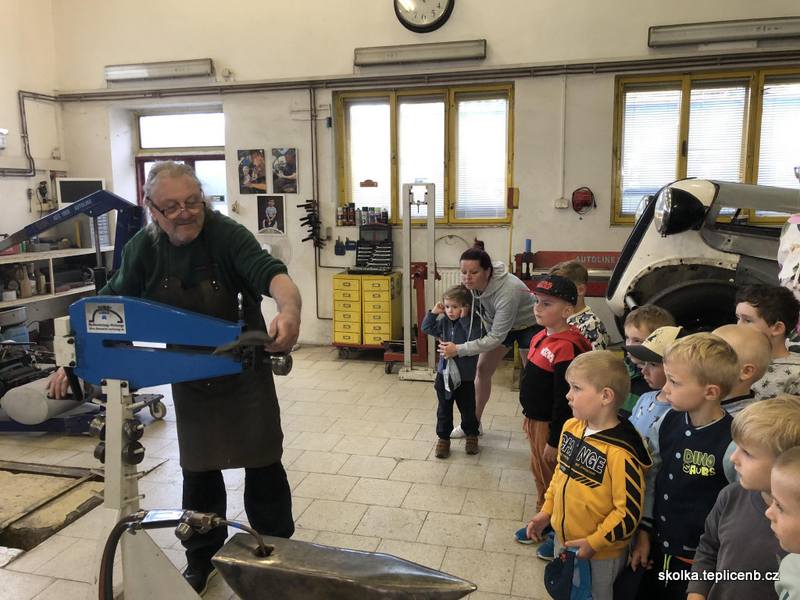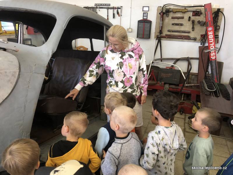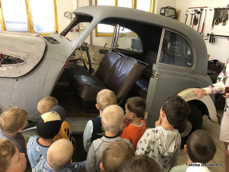 Dnes naši chlapci z MŠ navštívili autodílnu, která sídlí v Teplicích nad Bečvou. Měli možnost vidět kompletní renovaci veterána z roku 1929. Nadšení dětí bylo veliké. Děkujeme p. Tomečkovi za možnost nahlédnout do jeho kouzelného království, kde dětem ukázal své karosářské umění.