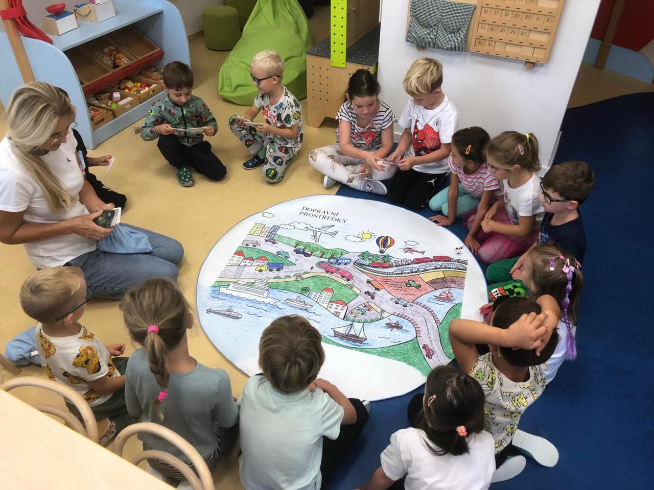 Děti se také seznamovaly s dopravními značkami - významem piktogramu, tvarem a barvou. Zároveň si děti zopakovaly dopravní prostředky na silnici, po kolejích, ve vzduchu i ve vodě.