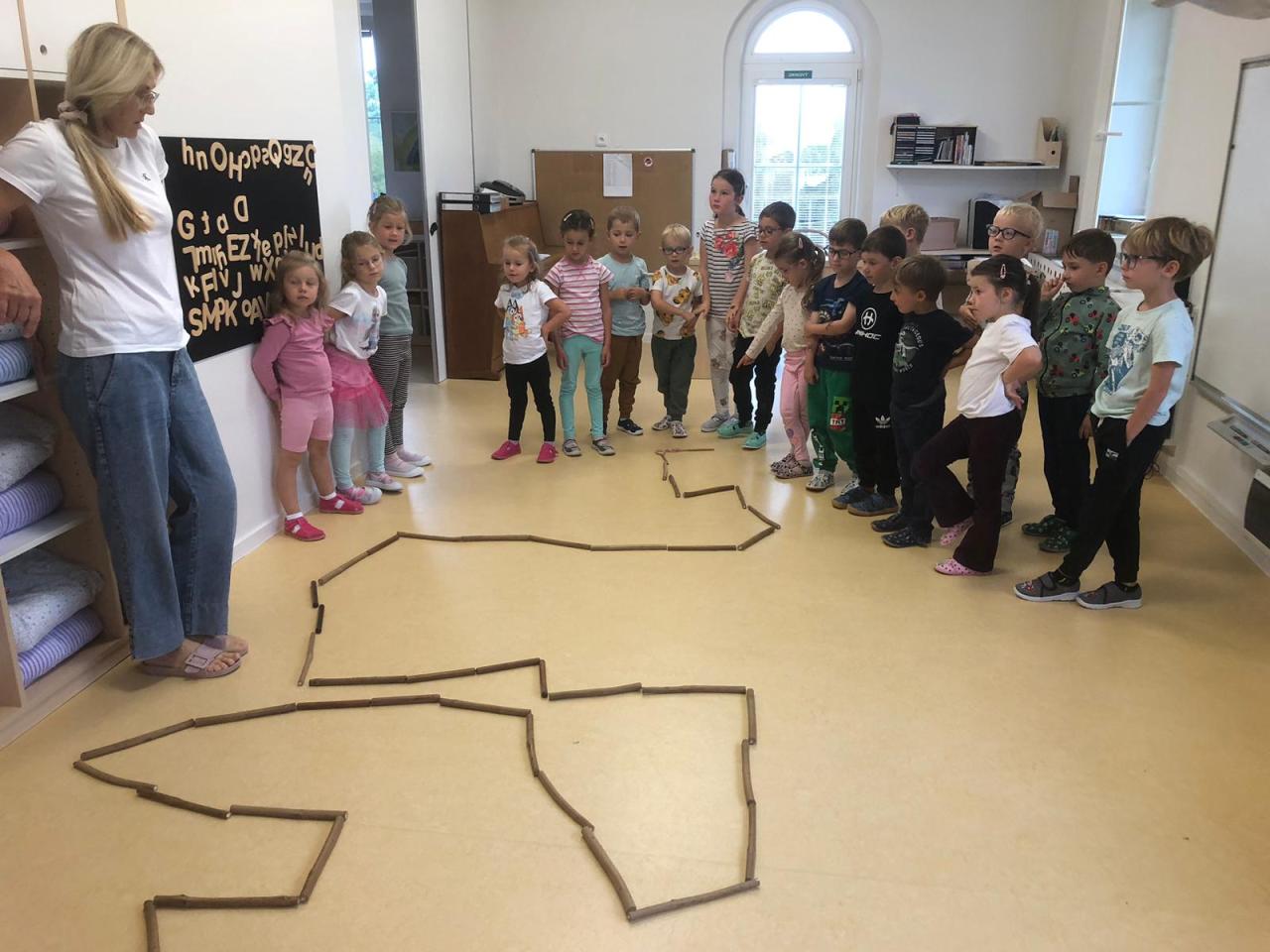 Ukazovali a kreslili jsme si na interaktivní tabuli cesty klikaté, rovné, široké, úzké, dlouhé, krátké, do kopce, i z kopce a tím jsme procvičili grafomotoriku. Stavěli jsme cesty z různých materiálů či stavebnic (kostky, lego, kuličkové dráhy, vršky z PET lahví), čímž jsme podpořili logické myšlení a kooperaci mezi dětmi.