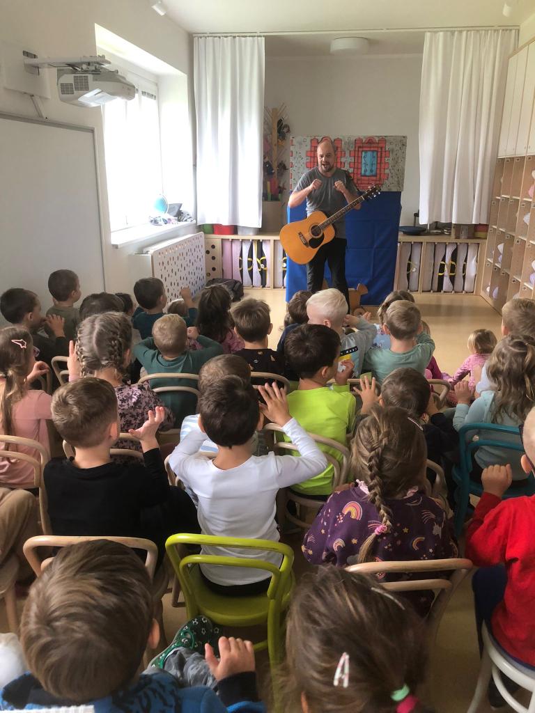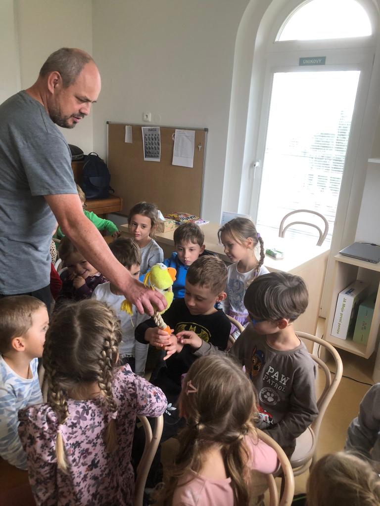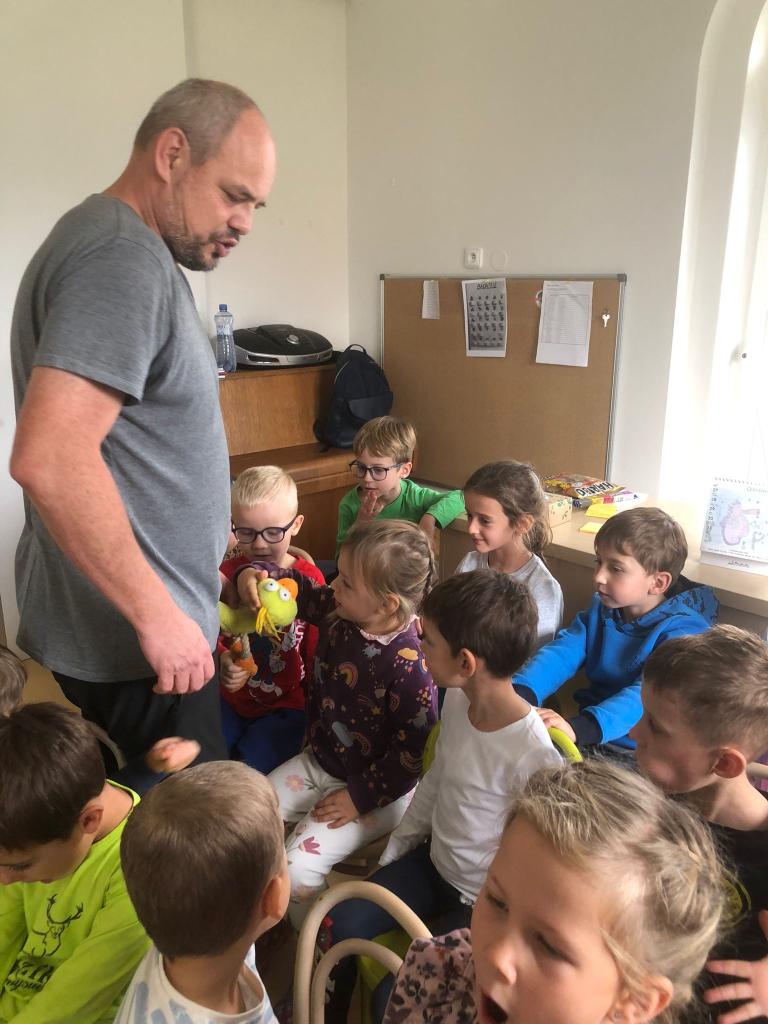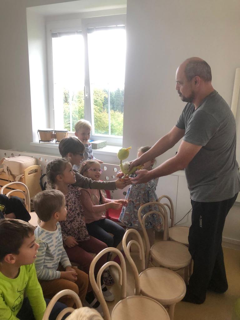 Děti byly nadšené, zpívaly s ním písničky, tleskaly do rytmu a s radostí se zapojovaly do děje. Smích, zpěv a radost se nesly celou třídou a bylo vidět, že si pohádkové dopoledne opravdu užívají plnými doušky.