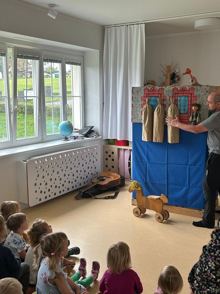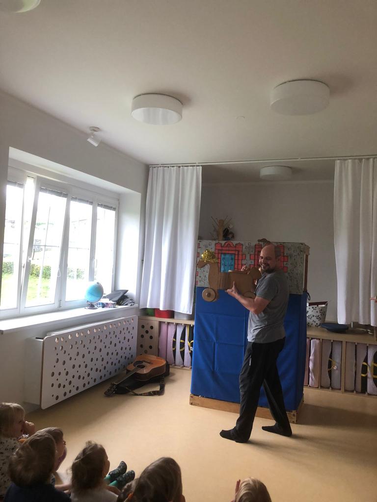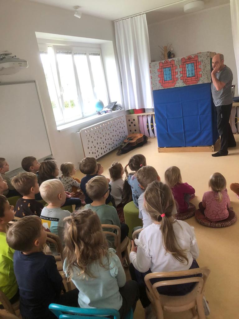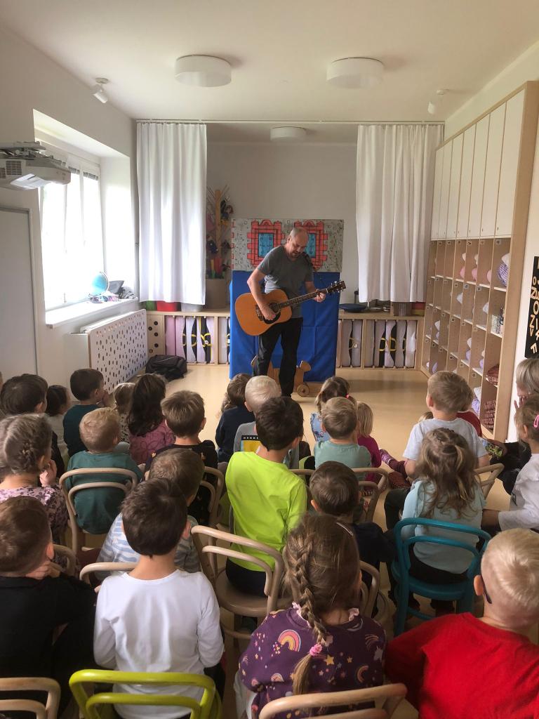 Děti byly nadšené, zpívaly s ním písničky, tleskaly do rytmu a s radostí se zapojovaly do děje. Smích, zpěv a radost se nesly celou třídou a bylo vidět, že si pohádkové dopoledne opravdu užívají plnými doušky.