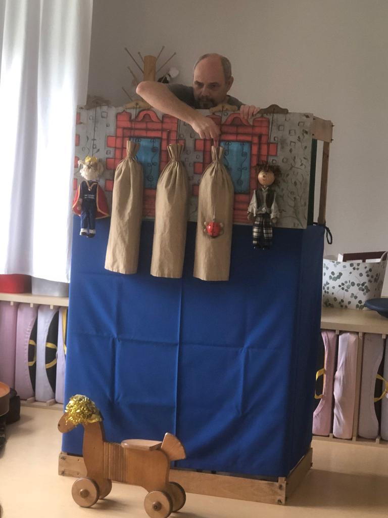 Ve středu 8. října přijel do naší MŠ pan Taraba se svou pohádkou O Zlatovlásce.