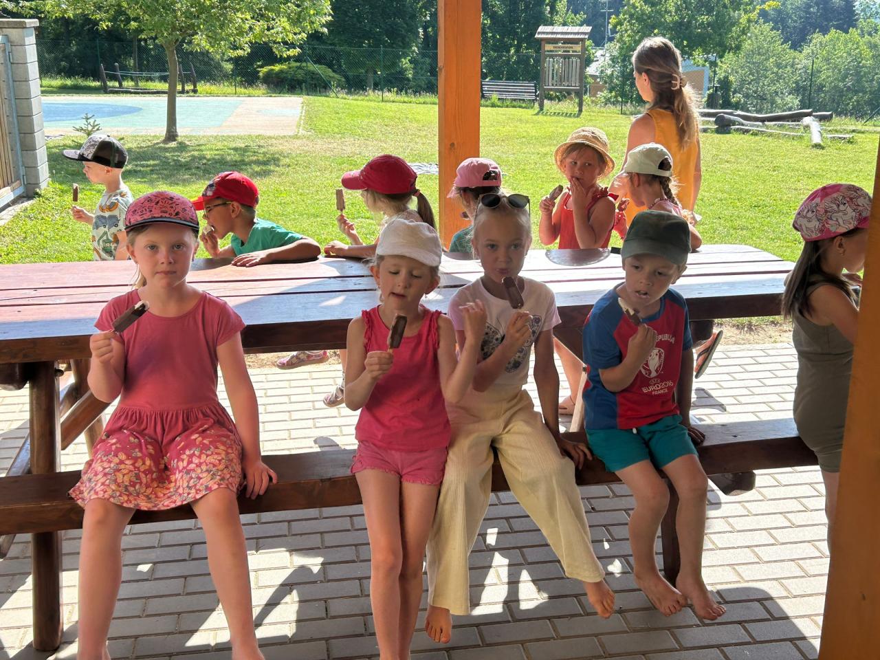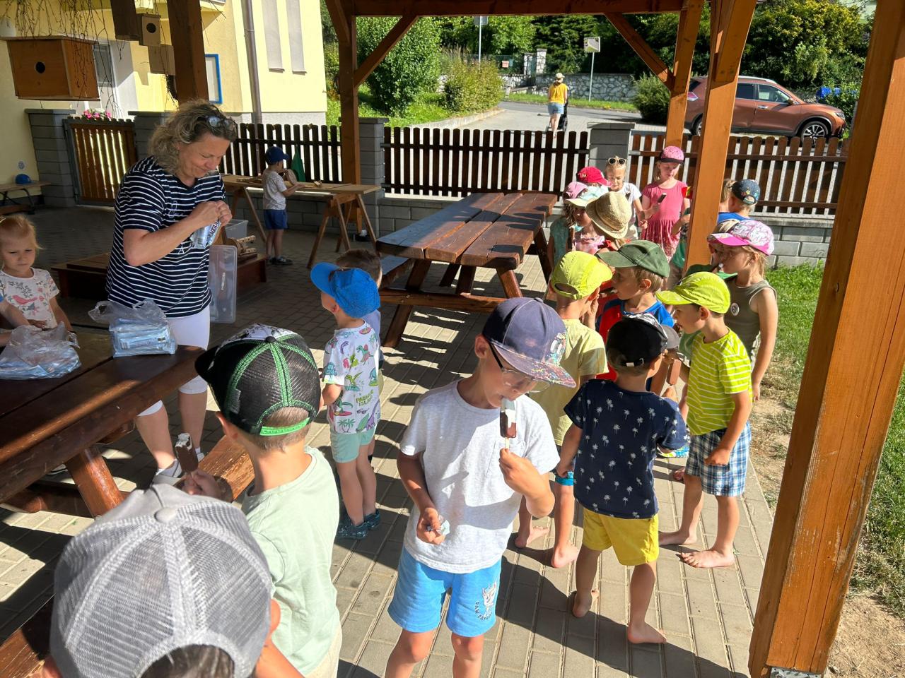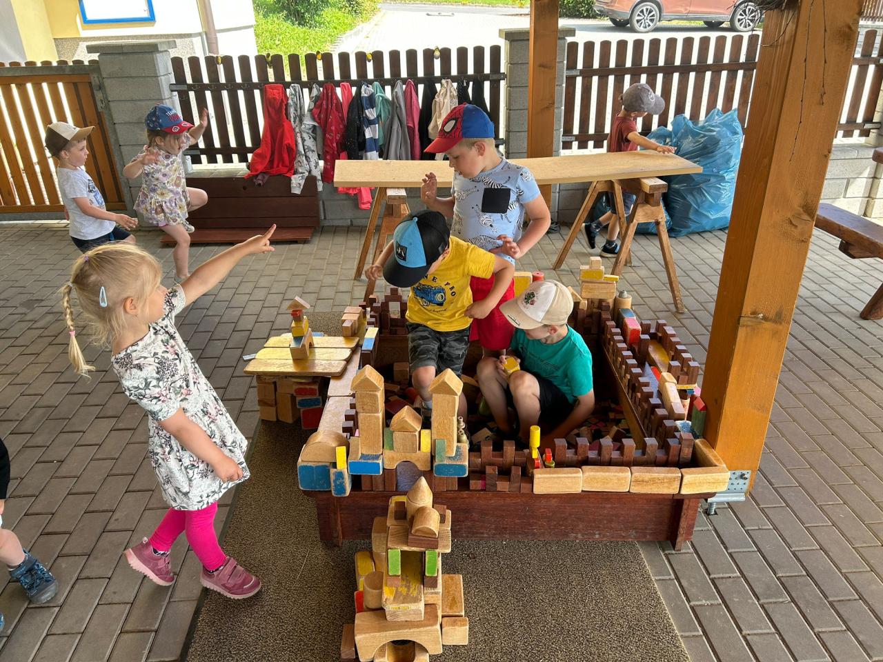 Tento týden jsme byli ve velké míře venku- to znamená venkovní ranní cvičení, vzdělávací program i stravování. Děti měly za úkol, pozorovat květiny-jejich barvu, vůni, v rámci předmatematických dovedností jsme květiny počítali, upevňovali jsme číselnou řadu, přidávali jsme a odebírali patřičné množství. Na vyvýšených záhoncích jsme upevňovali zvyk k pěstitelským pracem-plení, zalévání a ochutnávání plodů. Děti poznávaly bylinky a rostliny, měly možnost tyto bylinky rozpoznat i podle vůně. Jejich úkolem bylo pozorovat růst rostlin a pojmenovat nejen části, ale i proces růstu. Vzhledem k tomu, že jsme měli možnost trávit velkou část pobytu v MŠ venku, jsme mohli pozorovat změny počasí-větrno, slunečno, zataženo, … V tomto měsíci využíváme k relaxaci a ke čtení pohádky z projektu MAP – Kufr plný knih.