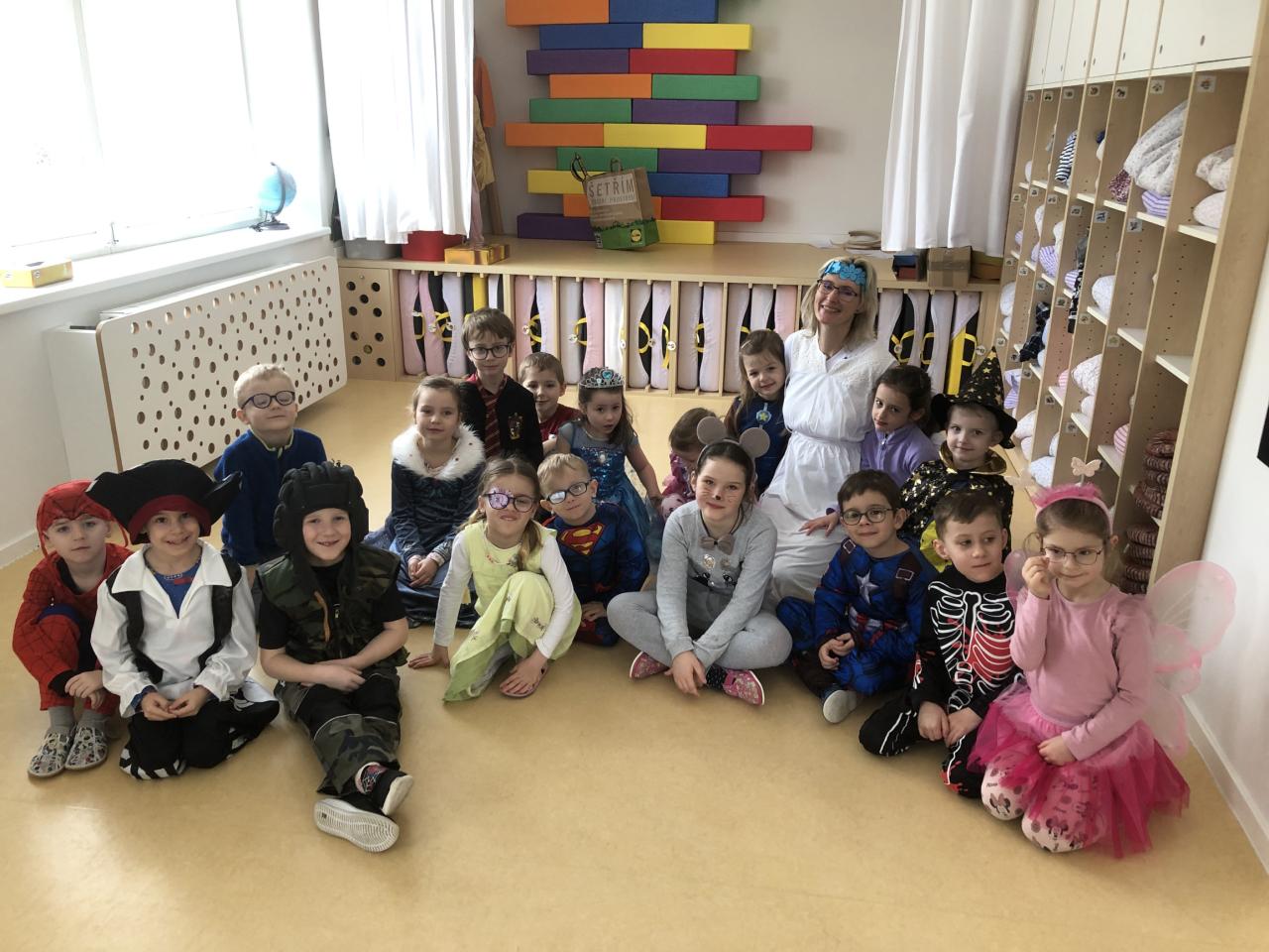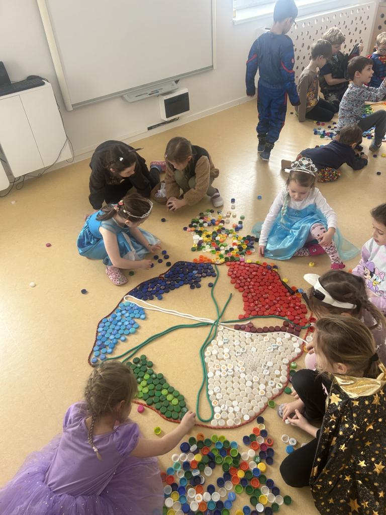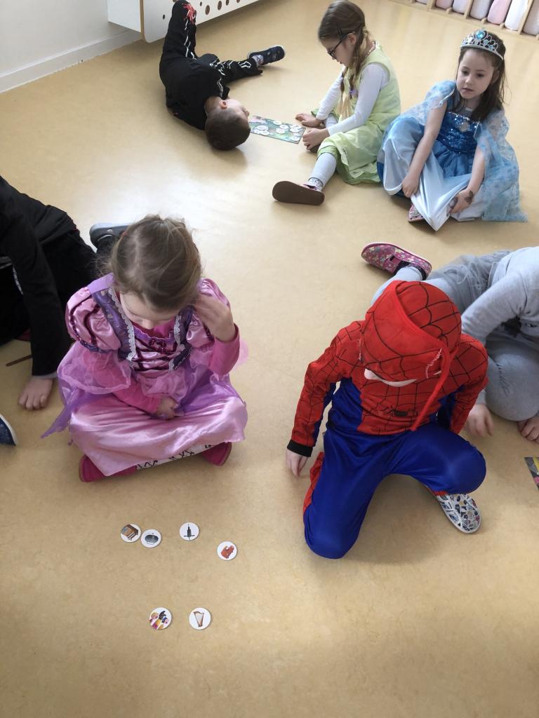 Děti se seznámily s tradicí Masopustu, ukázali jsme si známé postavy průvodu, jejich význam, proč medvěd tančil s hospodyní, poznávali jsme hudební nástroje podle vzledu i podle zvuku.