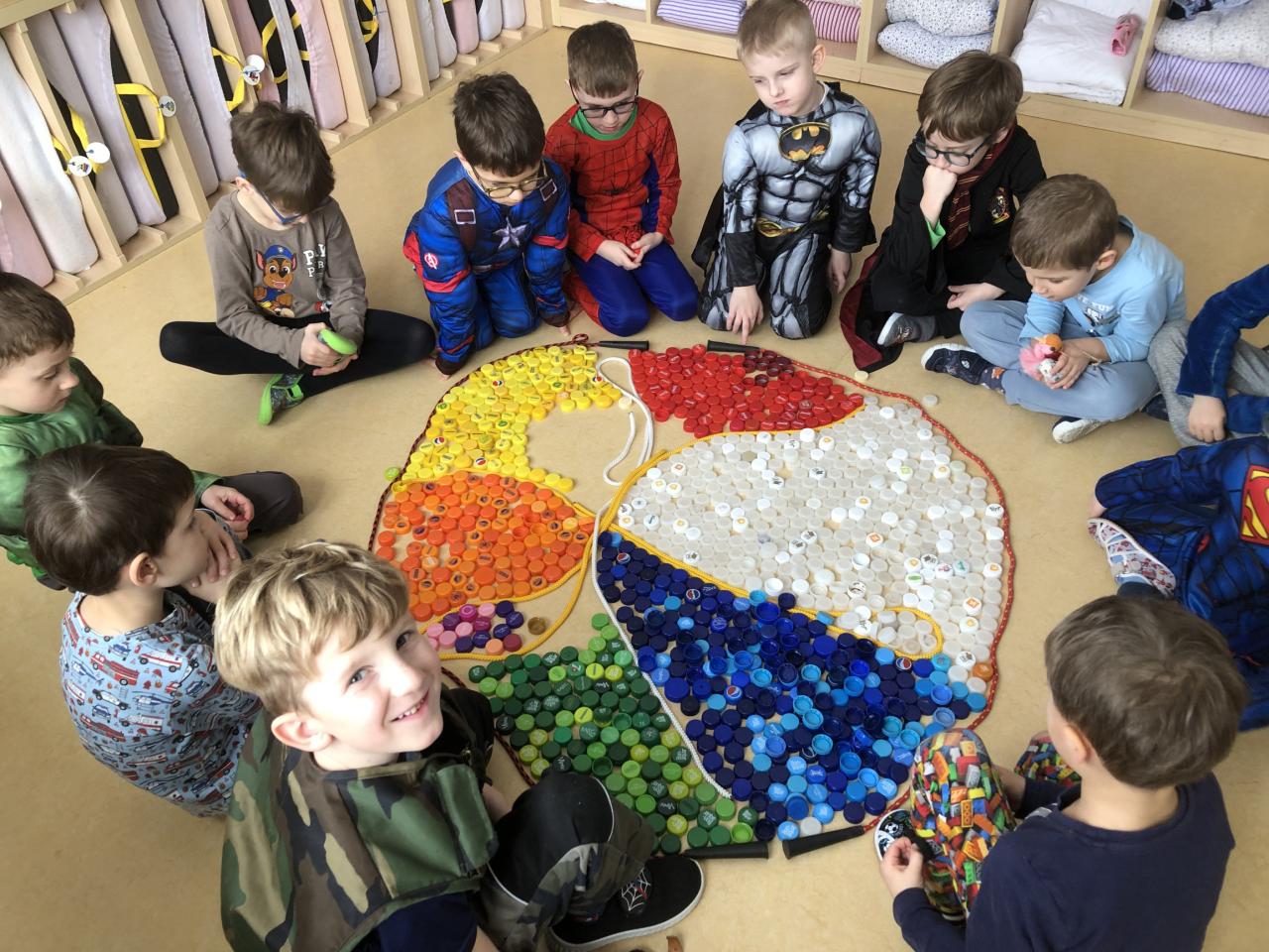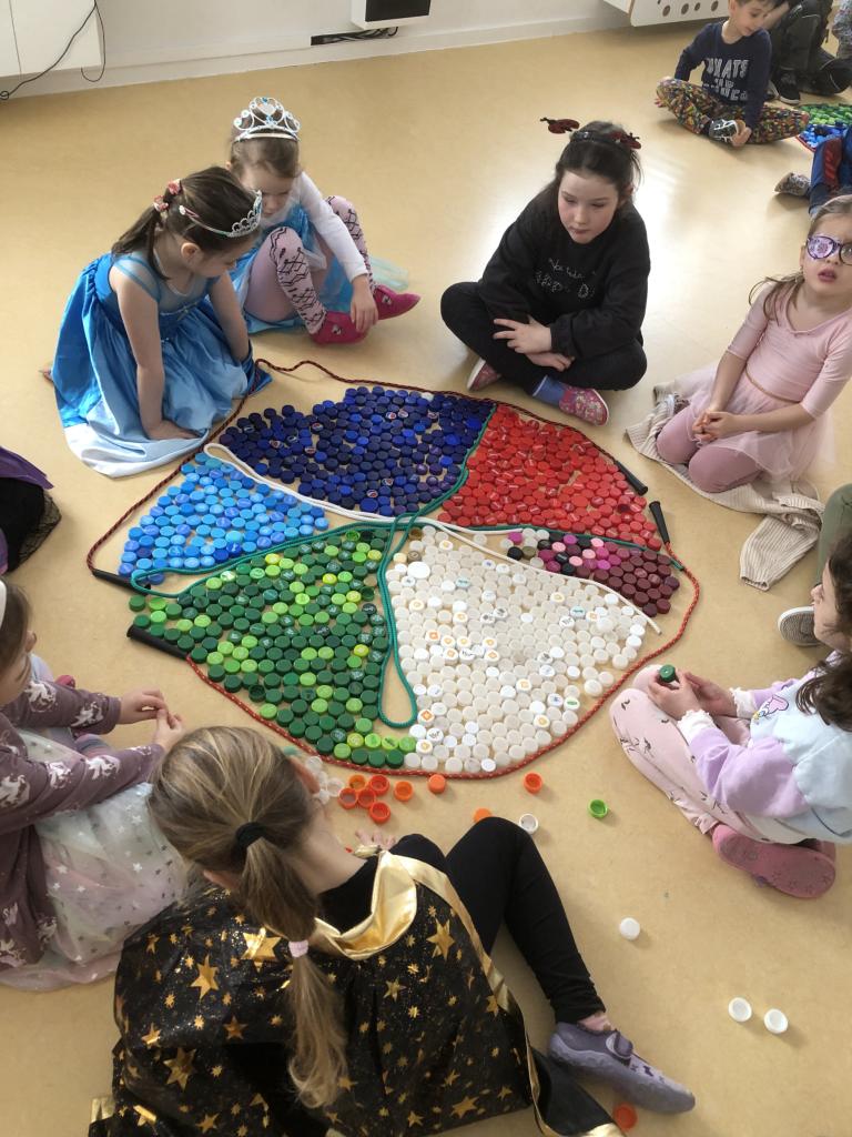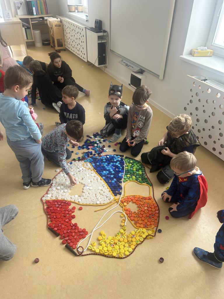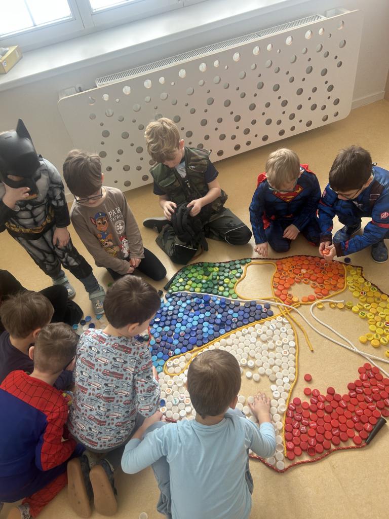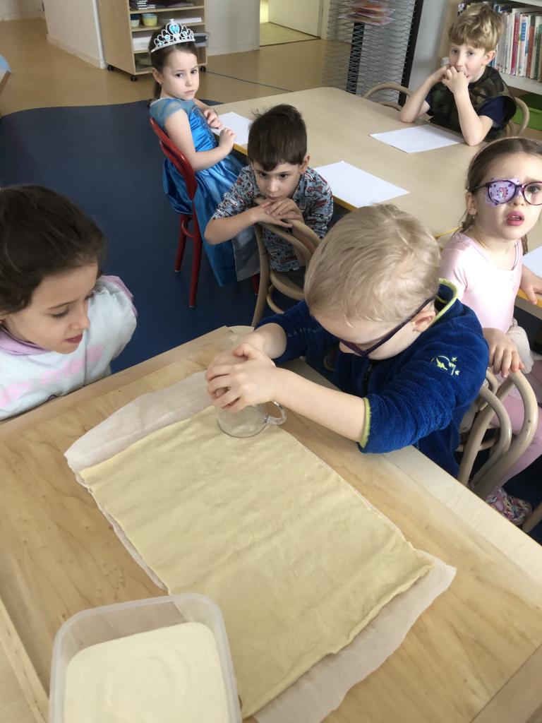 V rámci předmatematických dovedností jsme koláče dělili do zlomků-polovina, čtvrtina, šestina, osmina a pomocí PET vršků jsme zdobili koláče ve třídě.