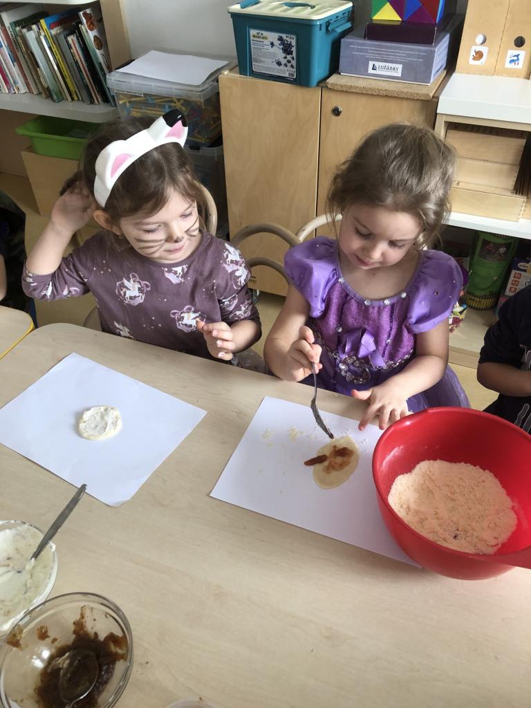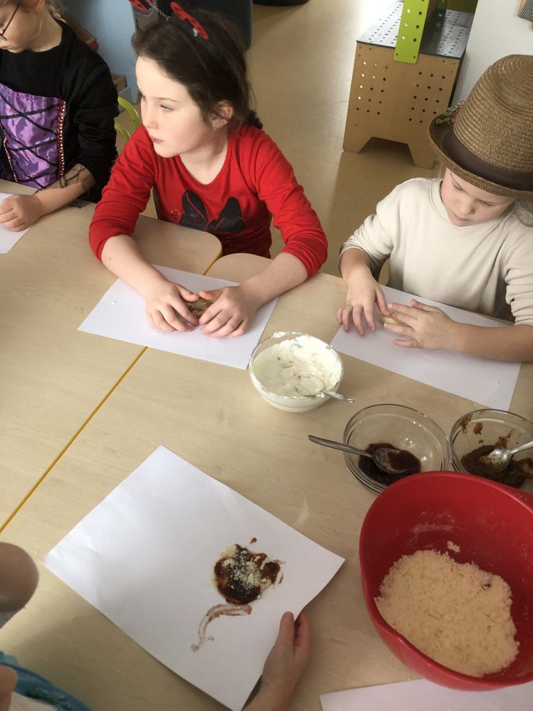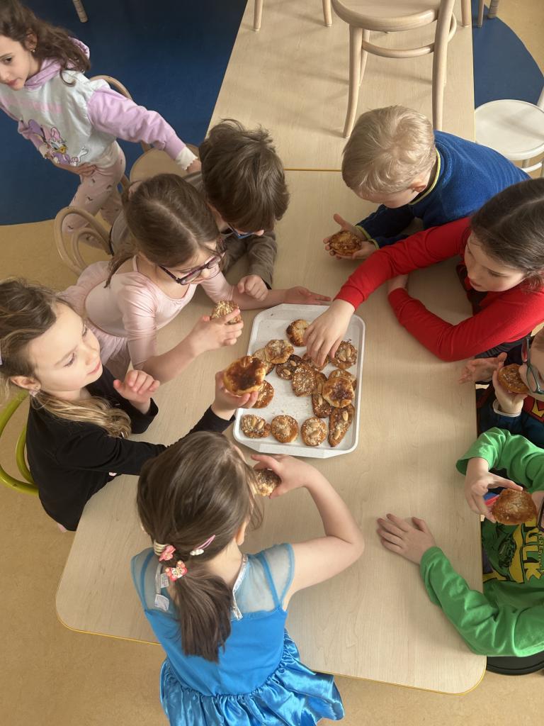 Jako sladkou tečku jsme si upekli masopustní koláče, děti si prohnětaly těsto, daly si na něj ingredience, které mají rády, společně jsme koláče upekli a na závěr dne i snědli :)