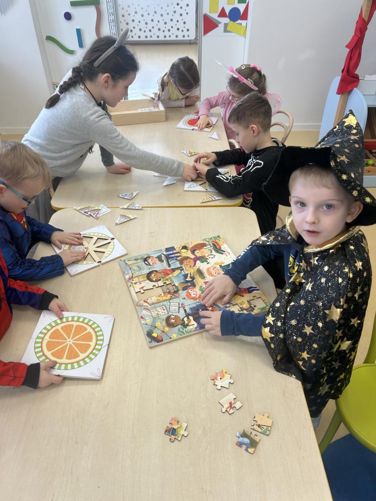 Děti si vyráběly a popisovaly vlastní masku a tím byly rozvíjeny řečové dovednosti dětí. Dramatizací pohádky O koblížkovi si děti vyzkoušely práci ve skupině, číselnou řadu a dramatické ztvárnění. Děti byly schopné sestavit dějovou posloupnost, pojmy před, za, první, poslední.