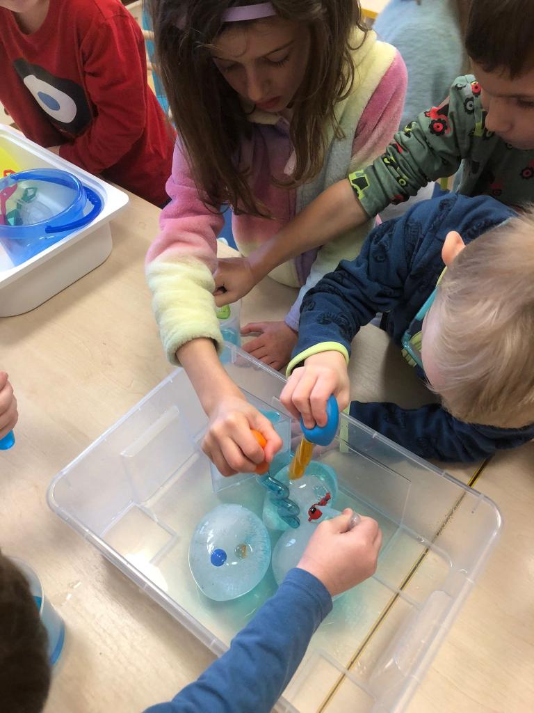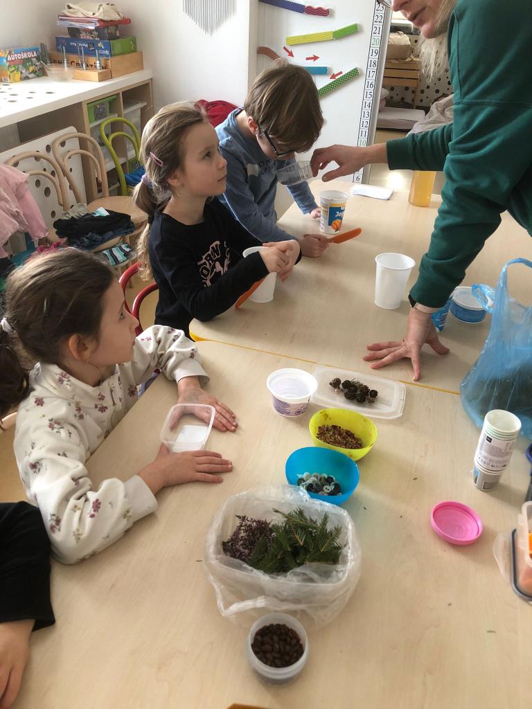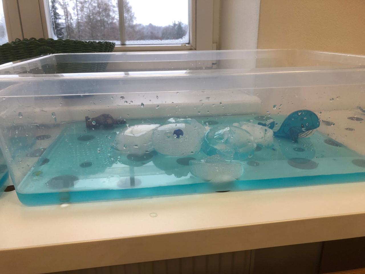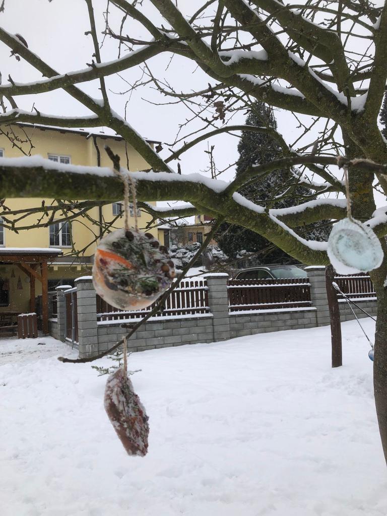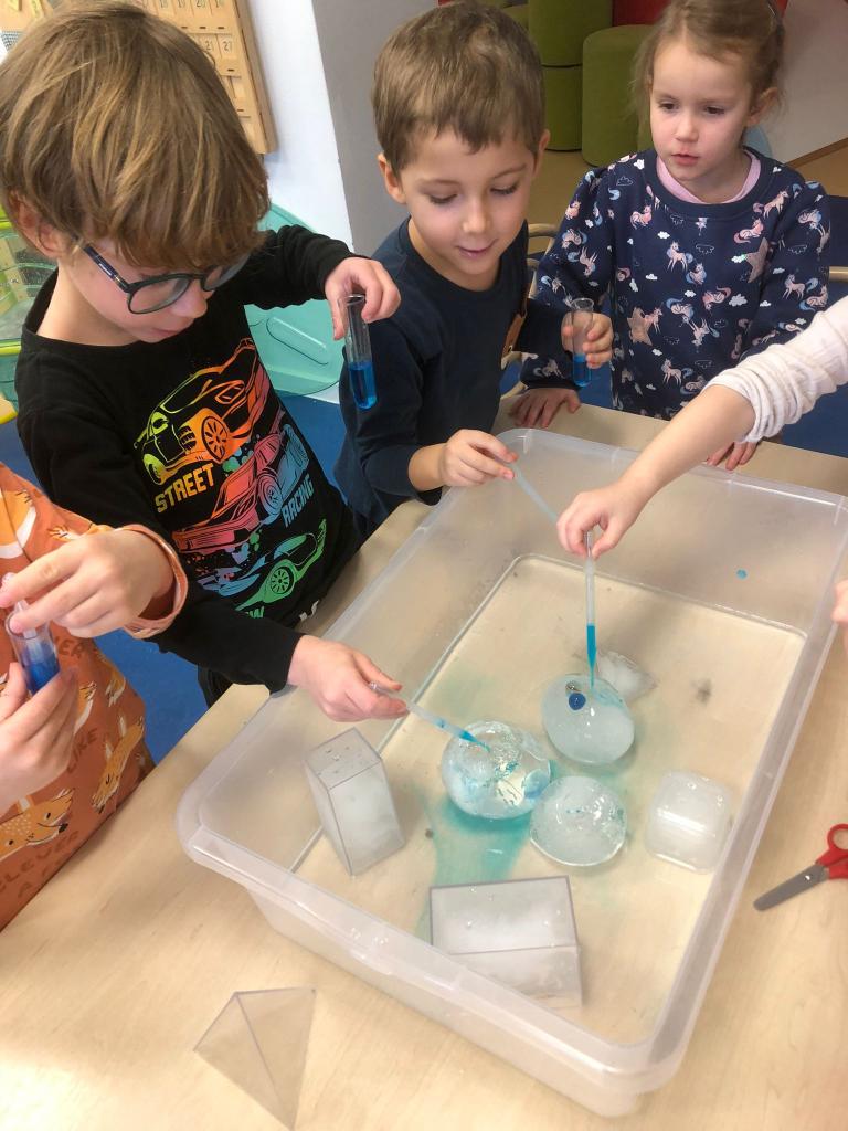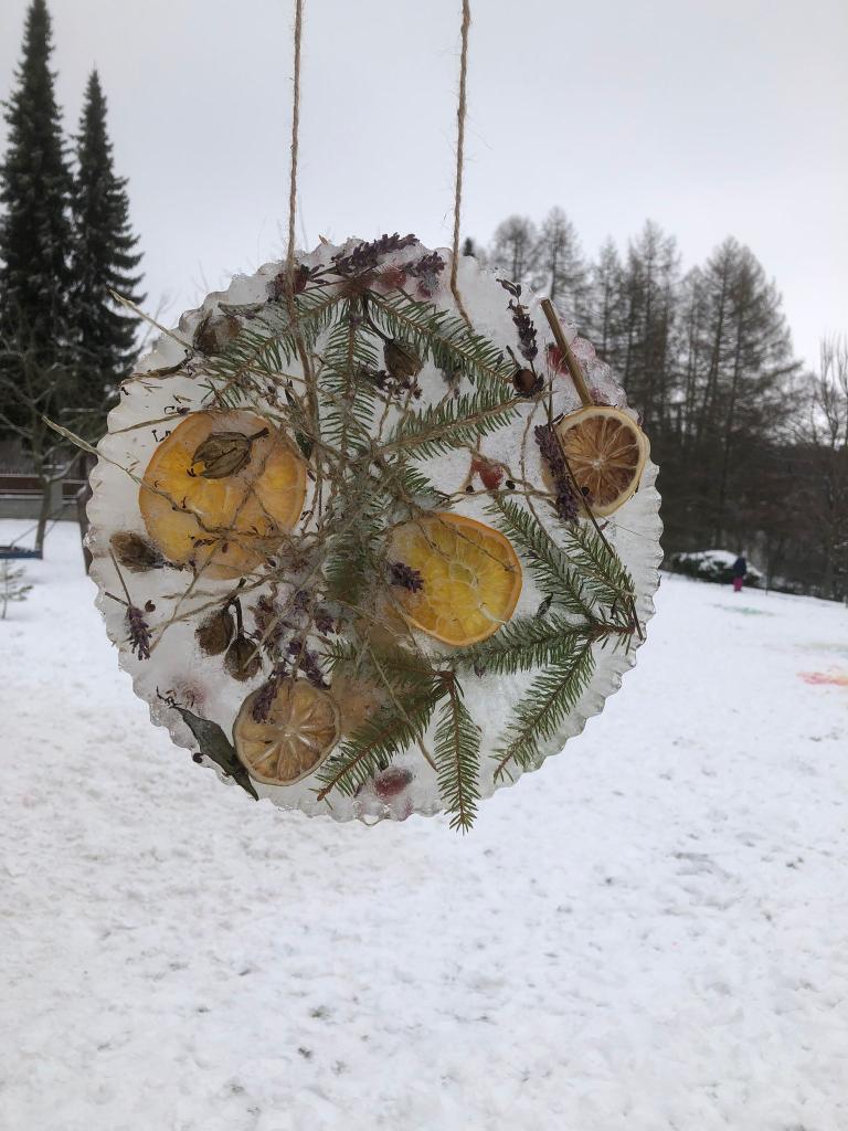 V tomto týdnu jsme si vyzkoušeli hned několik pokusů. Do formiček jsme si dali vodu s přírodninami a nechali venku zmrznout a poté jsme si ledovými květy ozdobili strom na zahradě. Celý týden jsme pozorovali, zda probíhá nějaká změna, či se mění skupenství ozdob z ledu na vodu.