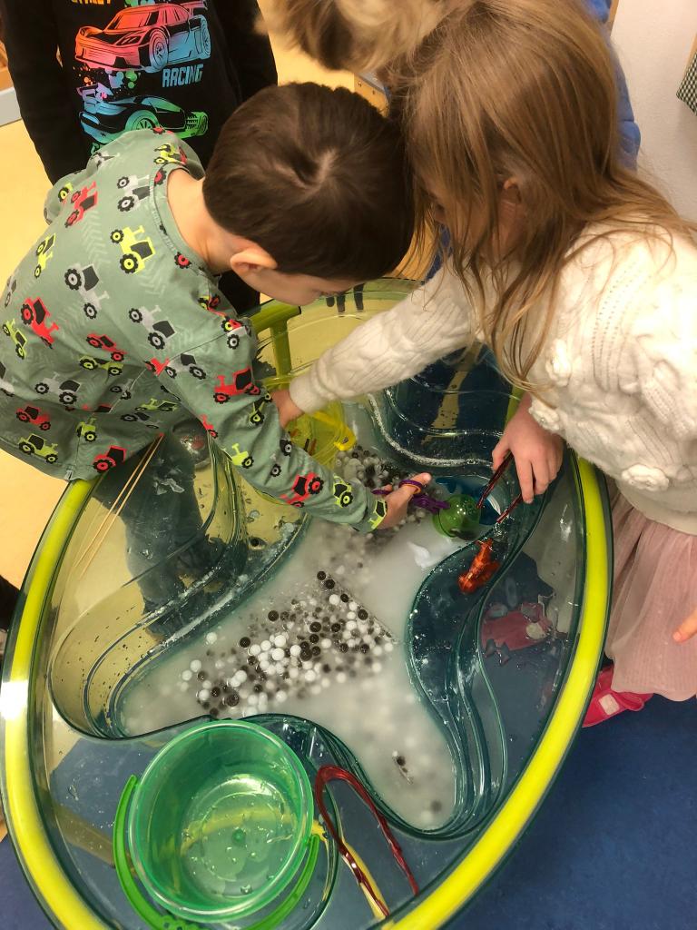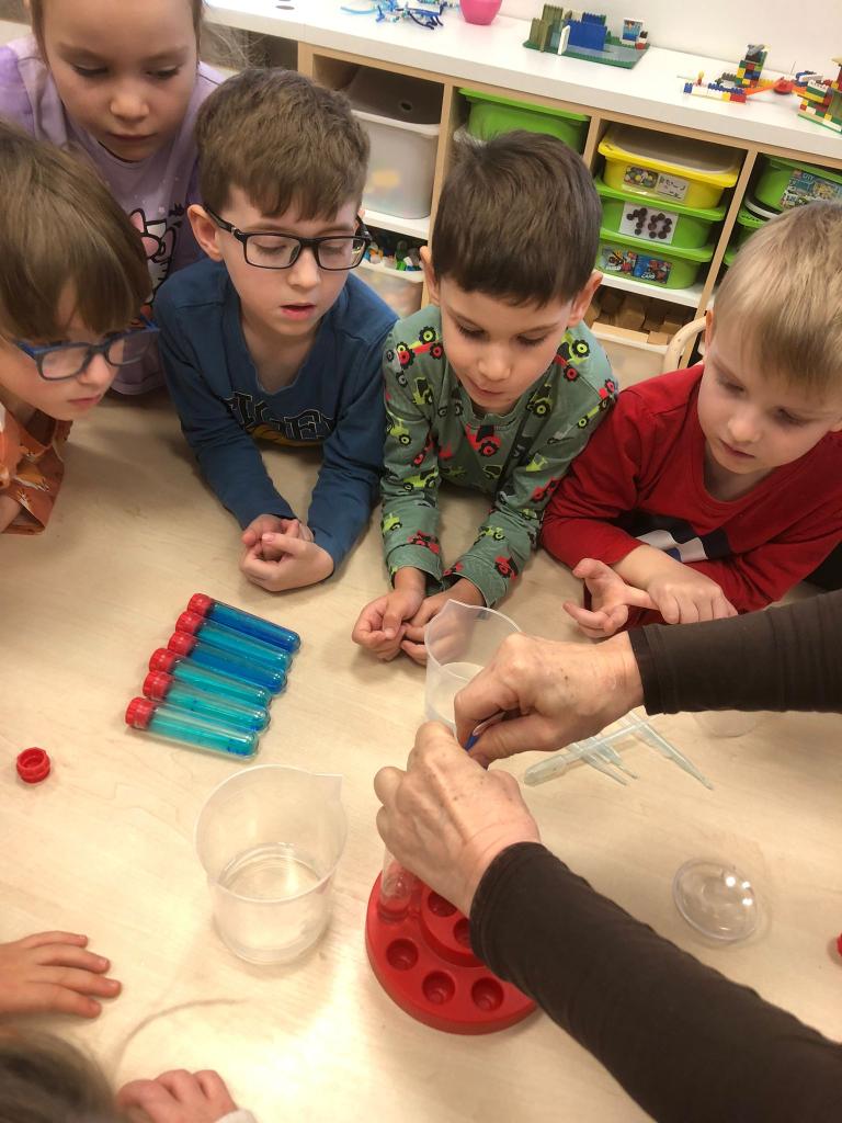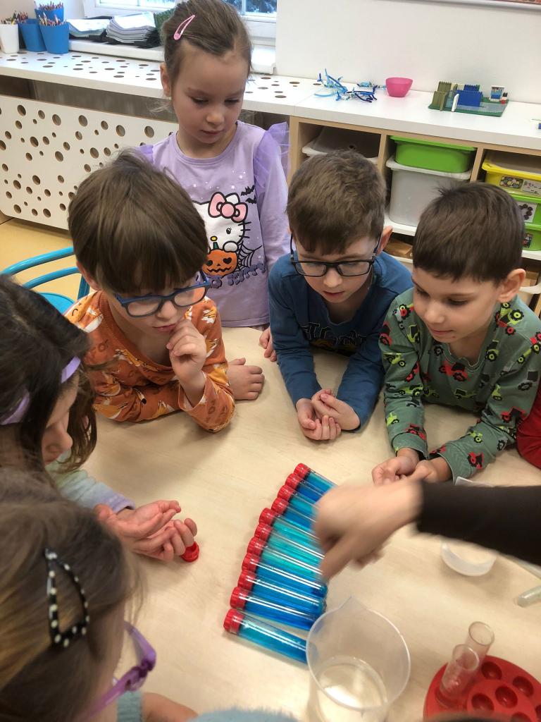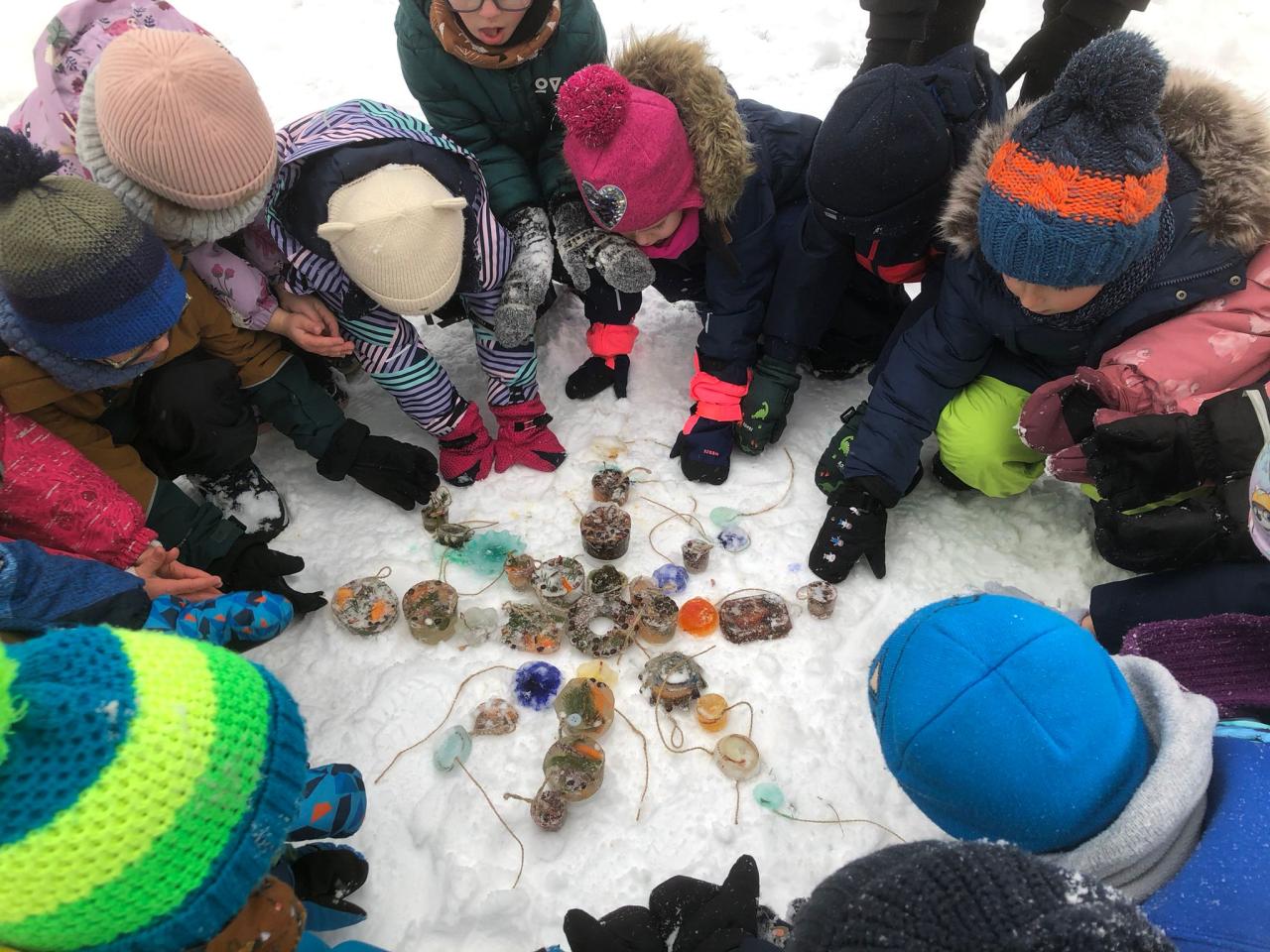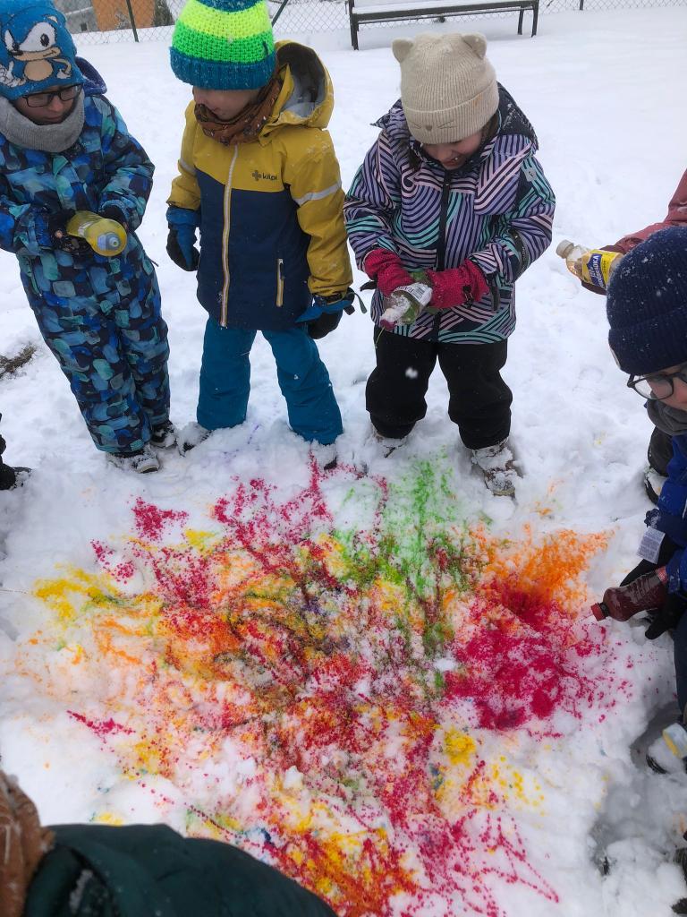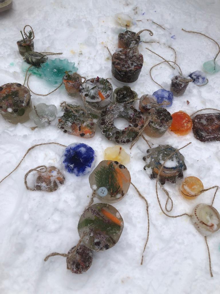 V tomto týdnu jsme si vyzkoušeli hned několik pokusů. Do formiček jsme si dali vodu s přírodninami a nechali venku zmrznout a poté jsme si ledovými květy ozdobili strom na zahradě. Celý týden jsme pozorovali, zda probíhá nějaká změna, či se mění skupenství ozdob z ledu na vodu.