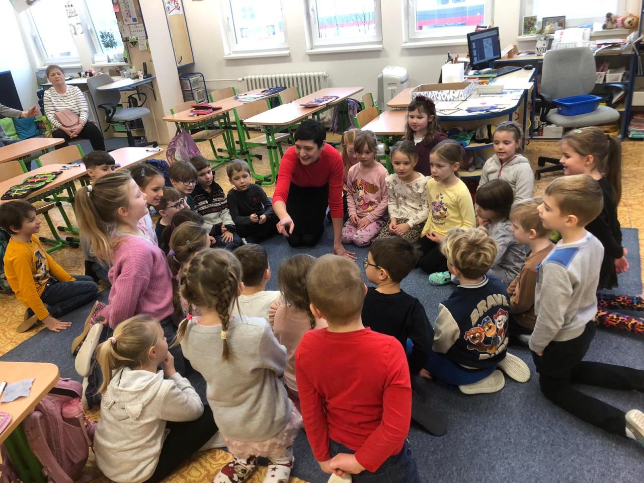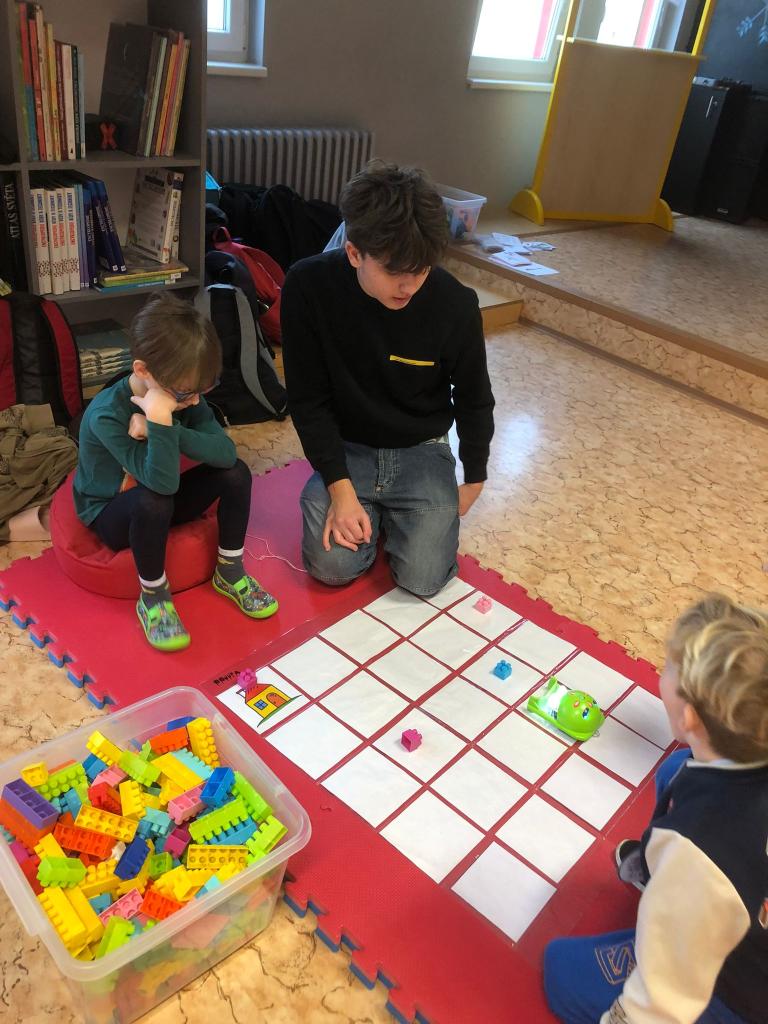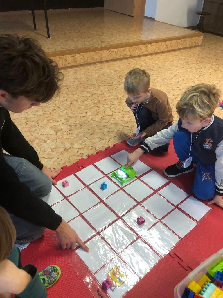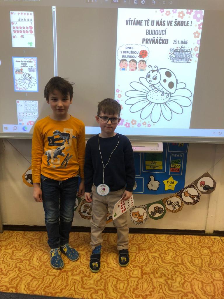 Ve středu jsme navštívili ZŠ 1. máje, kde měly děti možnost nahlédnout do výuky bilingvní třídy a poté nás čekalo překvapení v podobě hrátek s Bee-boty.