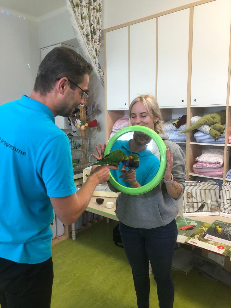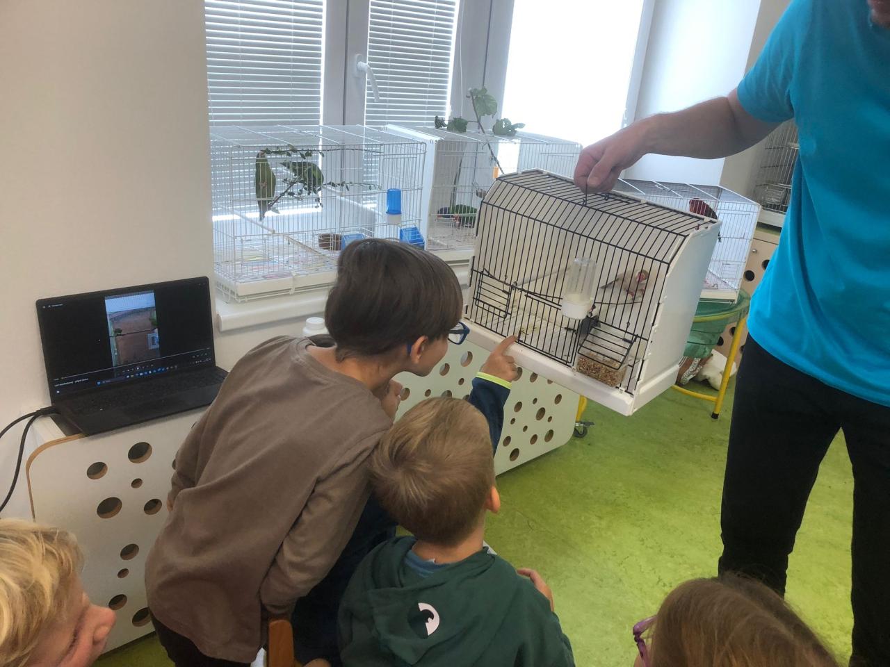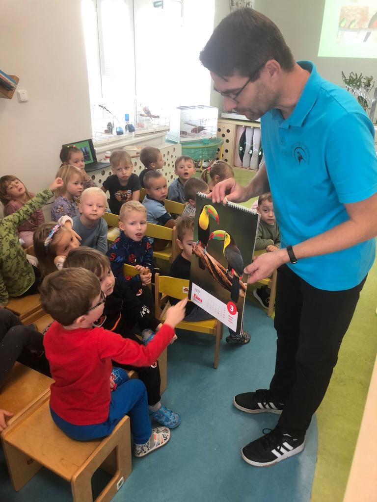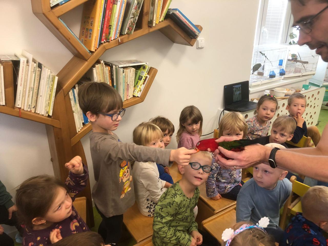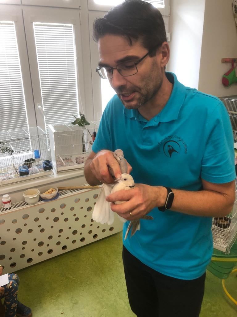 Pan doktor k nám zavítal, aby dětem přiblížil svět převážně exotických ptáků. Na začátku programu nám představil druhy, které přivezl s sebou v klecích – například papoušky, rýžovníky, chůvičky, zebřičky, hrdličky a další. Vyprávěl o jejich způsobu života, potravě, rozmnožování, hnízdění i o zajímavostech z jejich chovu.