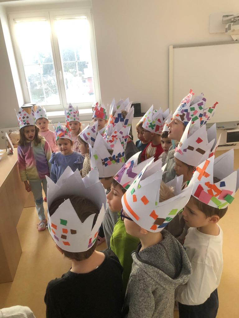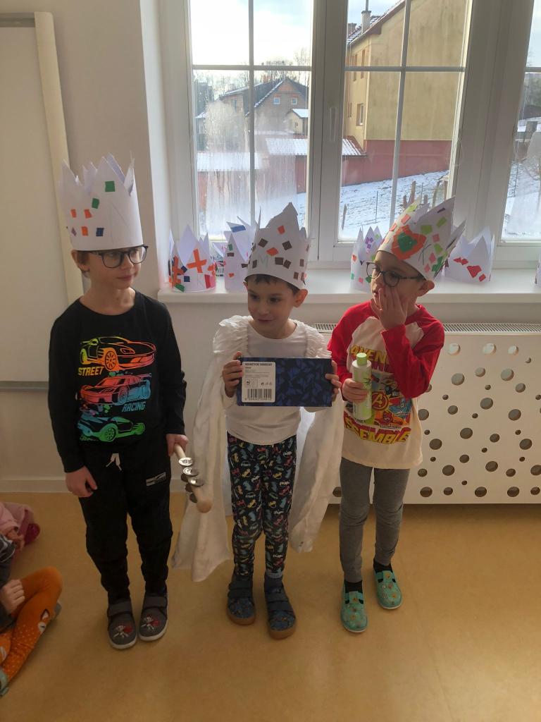 Nemohli jsme opomenout také 6. leden, svátek Tří králů. Děti se seznámily s tradicí a na základě svých vědomostí jsme si zopakovali, jaká jména mají tři králové, co nesli Ježíškovi a jaký význam má Tříkrálová sbírka. V rámci pracovních činností děti vytvářely vlastní koruny s vybraným písmenem jednoho z králů.