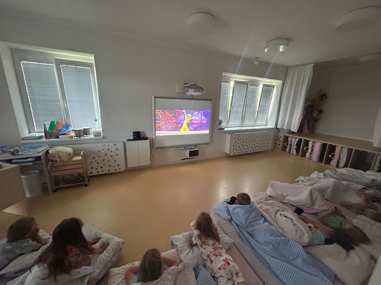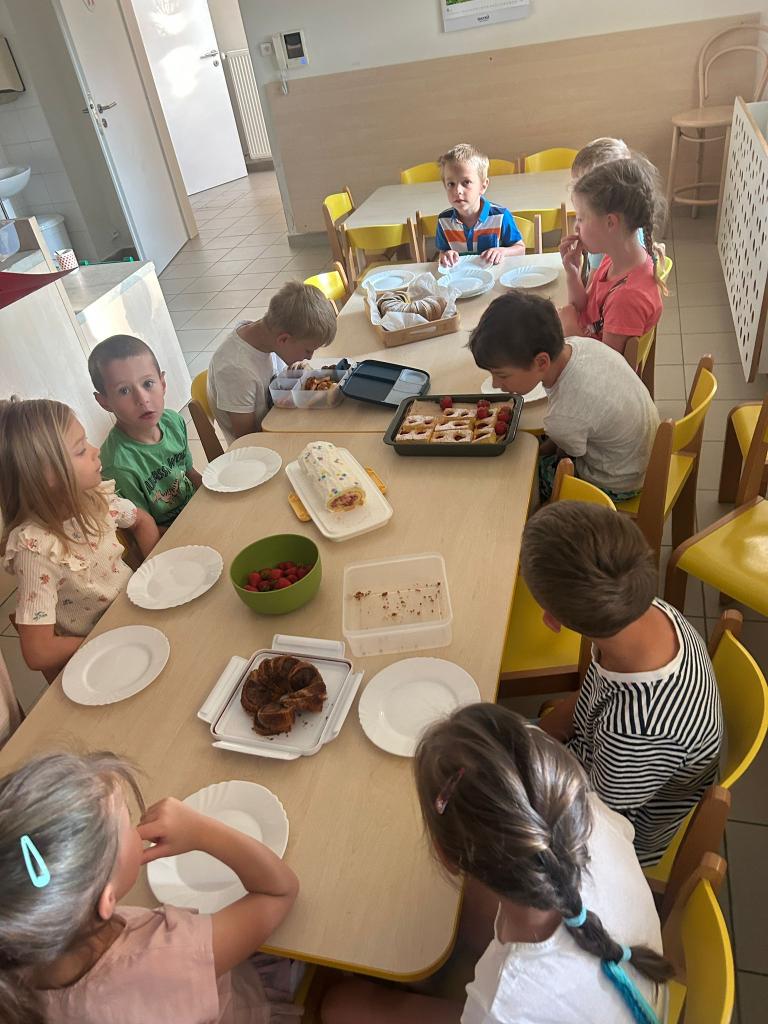 Před spaním jsme si společně pustili pohádku a poté se děti uložily ke spánku se spoustou dojmů. Ráno je čekala snídaně z dobrot, které přinesli rodiče - ovoce a výborné pečené buchty, koláče a muffiny za které vám velmi děkujeme.