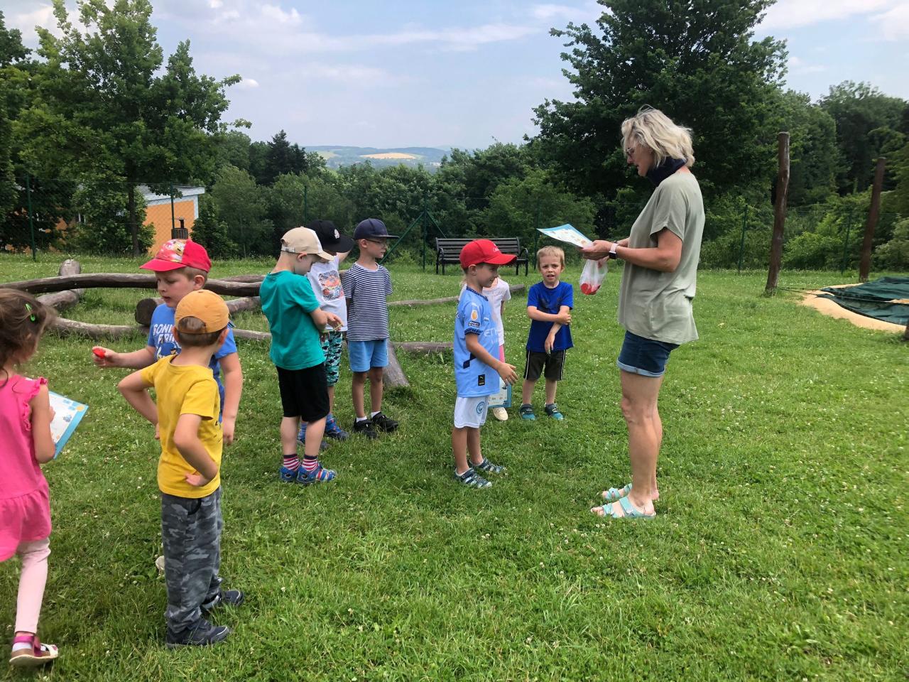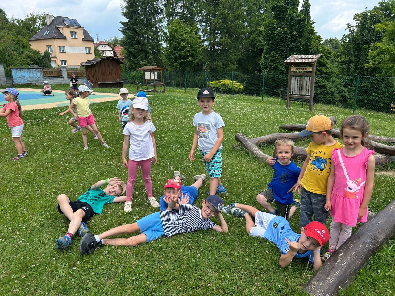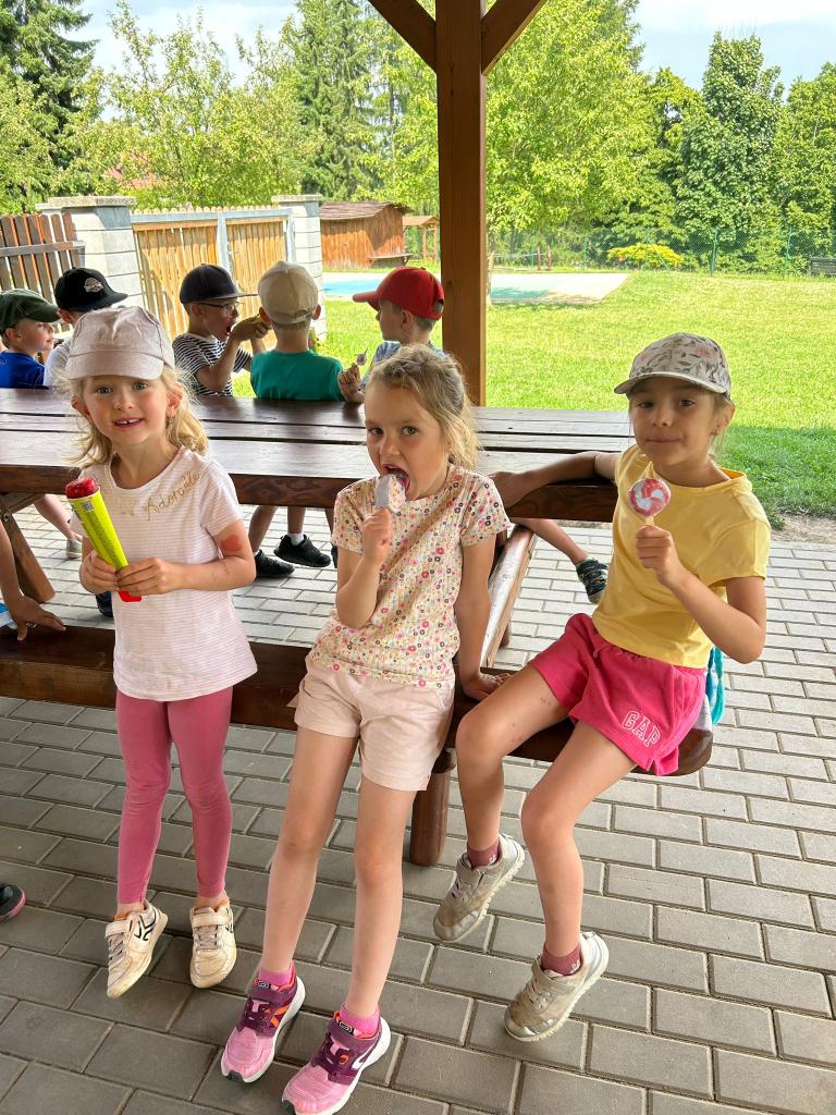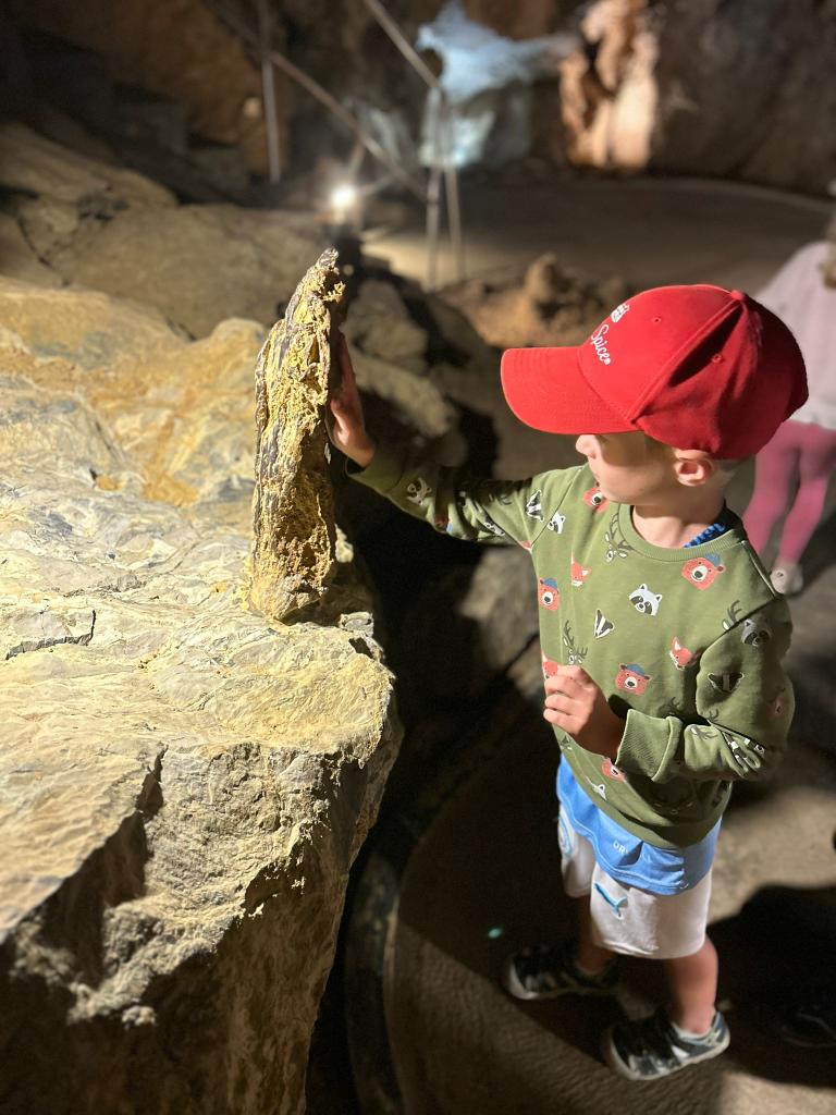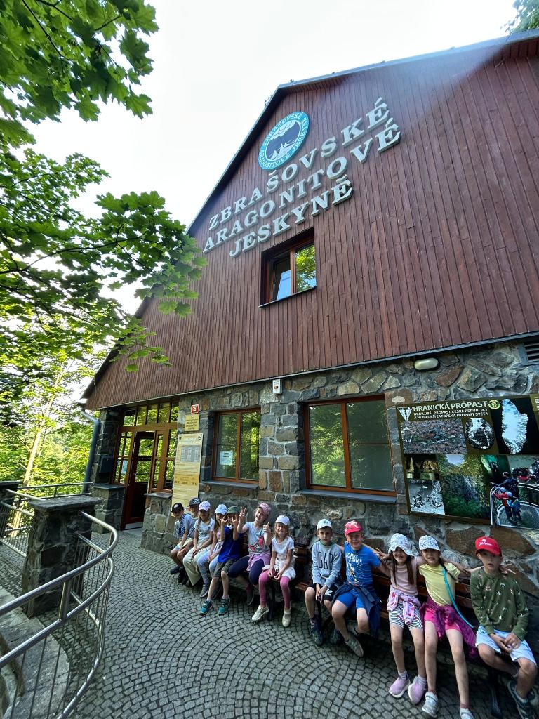 Po svačině nás čekalo milé překvapení – pan Horňáček přivezl pro všechny děti nanuky, které přišly vhod jako osvěžení. Poté jsme společně vyrazili na výlet do místních Zbrašovských jeskyní, kde děti objevovaly tajemství podzemního světa a užily si dobrodružnou atmosféru. Velmi poutavou formou nás provedla paní průvodkyně Adélka. Nejvíce se dětem líbila situace, kdy paní průvodkyně zhasla v celé jeskyni a děti měly možnost vidět jeskyni přesně tak jako její první objevitelé.