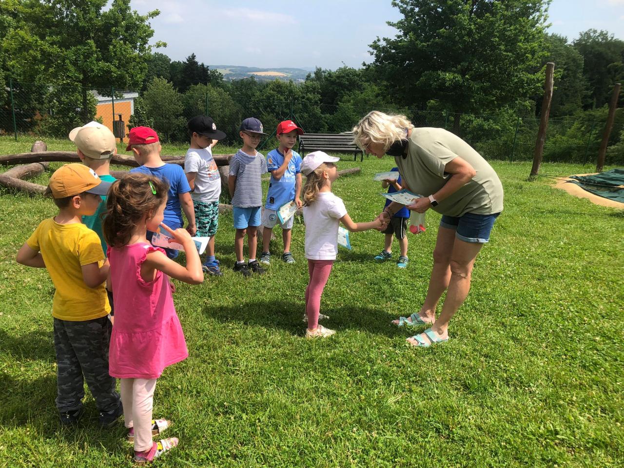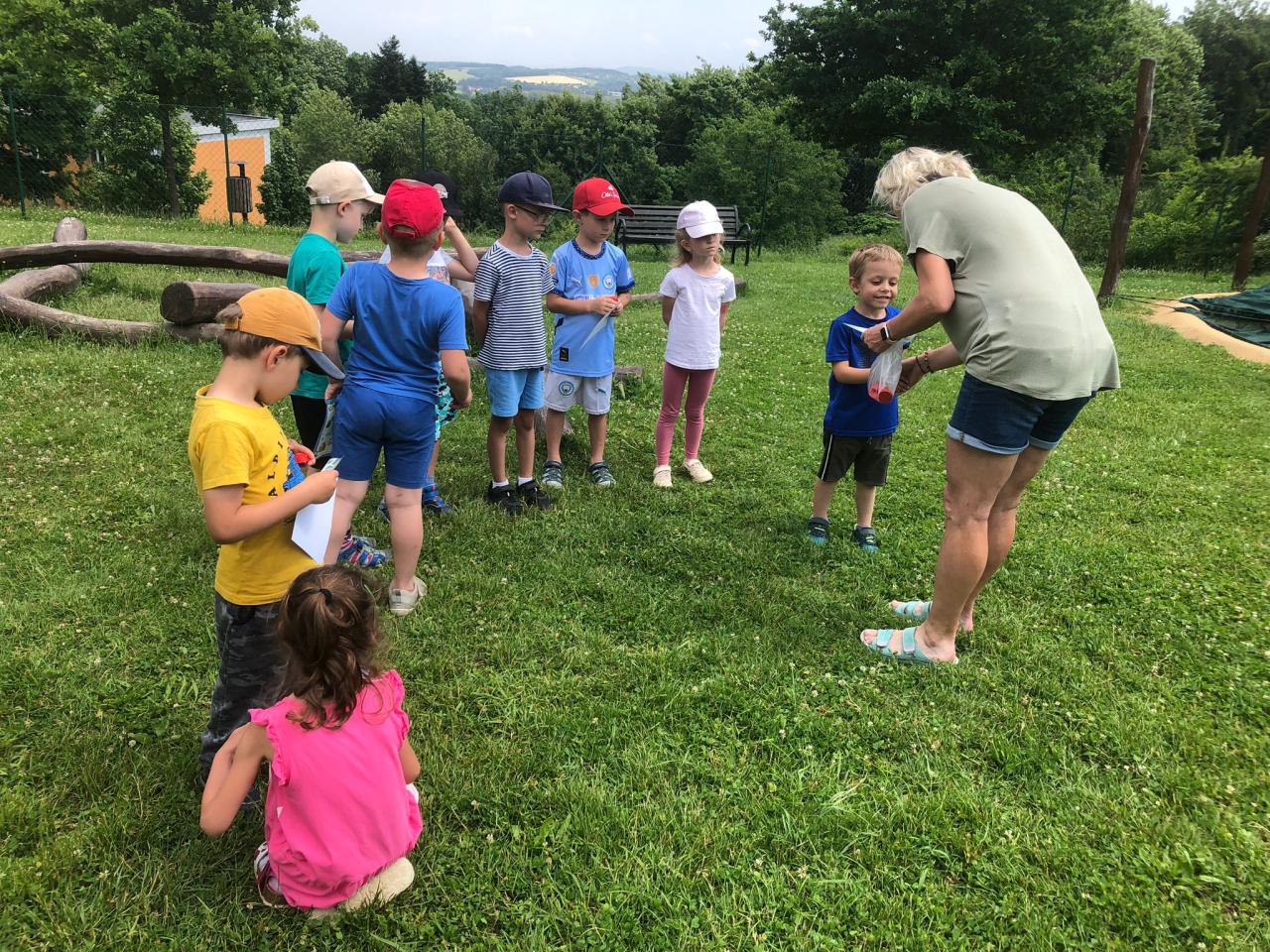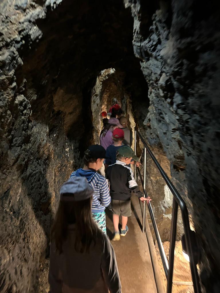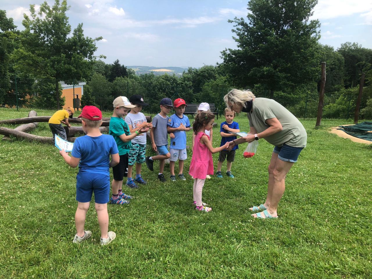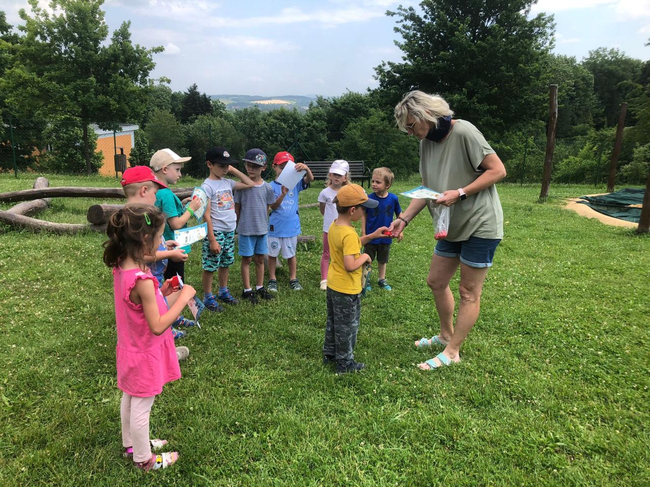 Po svačině nás čekalo milé překvapení – pan Horňáček přivezl pro všechny děti nanuky, které přišly vhod jako osvěžení. Poté jsme společně vyrazili na výlet do místních Zbrašovských jeskyní, kde děti objevovaly tajemství podzemního světa a užily si dobrodružnou atmosféru. Velmi poutavou formou nás provedla paní průvodkyně Adélka. Nejvíce se dětem líbila situace, kdy paní průvodkyně zhasla v celé jeskyni a děti měly možnost vidět jeskyni přesně tak jako její první objevitelé.
