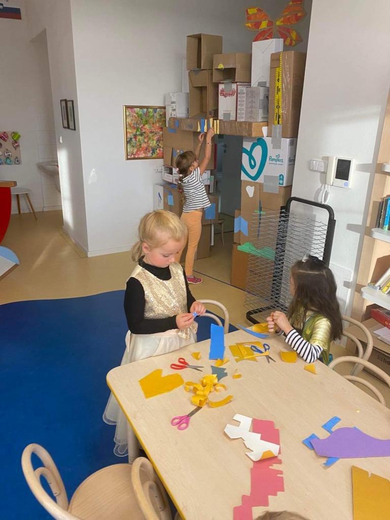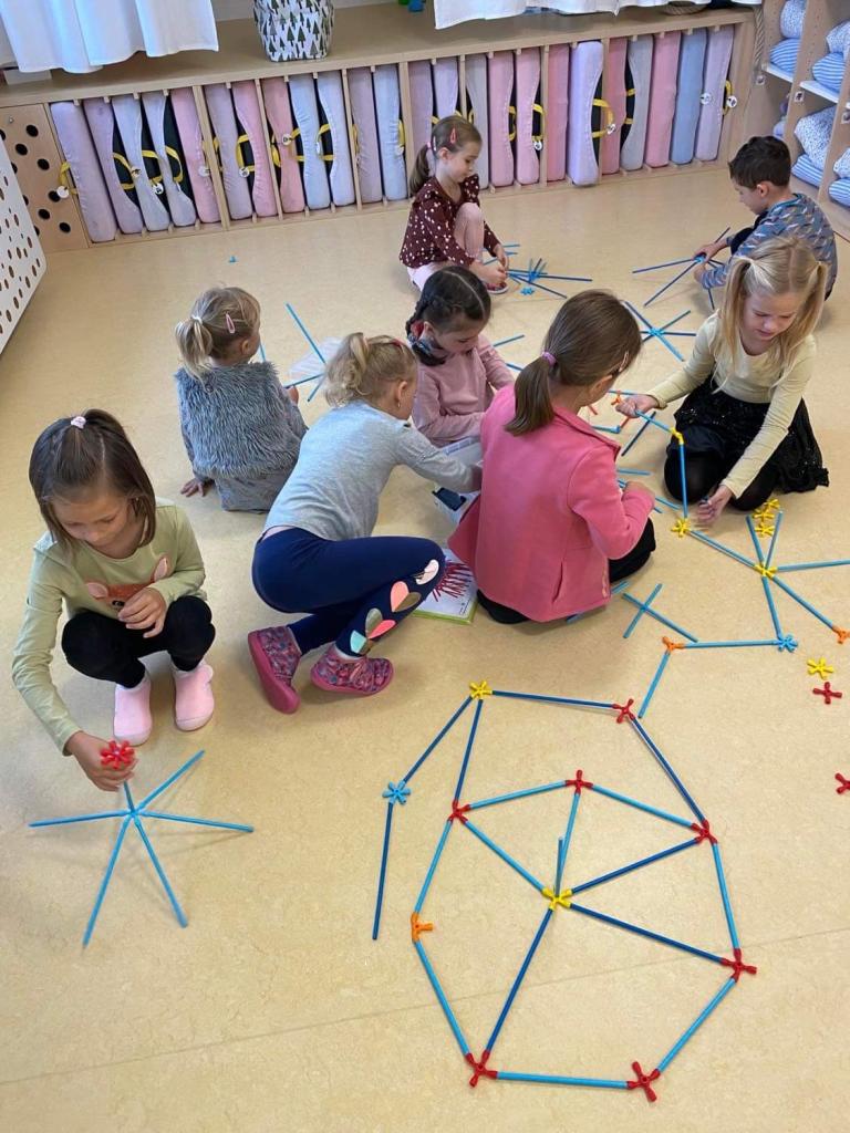 V rámci konstruktivních činností děti ve skupině vytvářely originální stavby a podporovaly týmového ducha- kooperace a komunikace ve skupině.