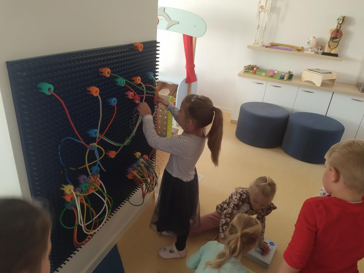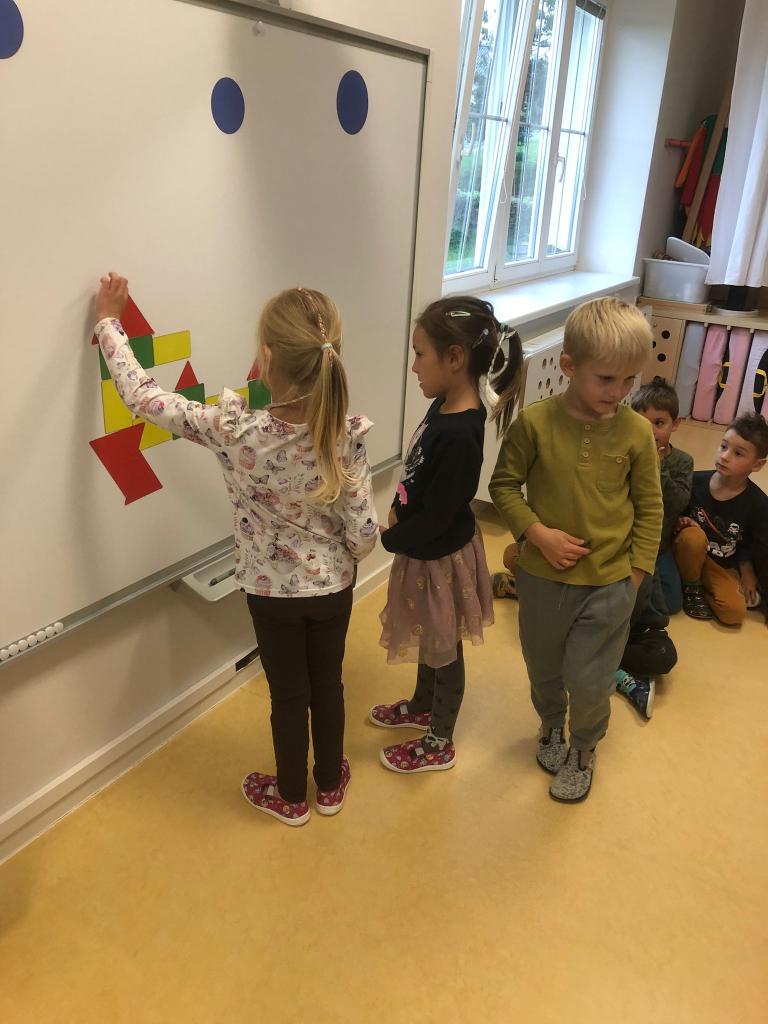 Samozřejmě i v tomto týdnu jsme nezapomněli na výtvarné činnosti, kdy jsme si vytvořili každý svůj rodový erb, zpívali jsme písně za doprovodu klavíru, použili jsme dešťovou hůl, či ozvučné trubky a procvičili jsme si geometrické tvary, a to i prostorové. Děti si zopakovaly pojmy první, poslední, před, za.