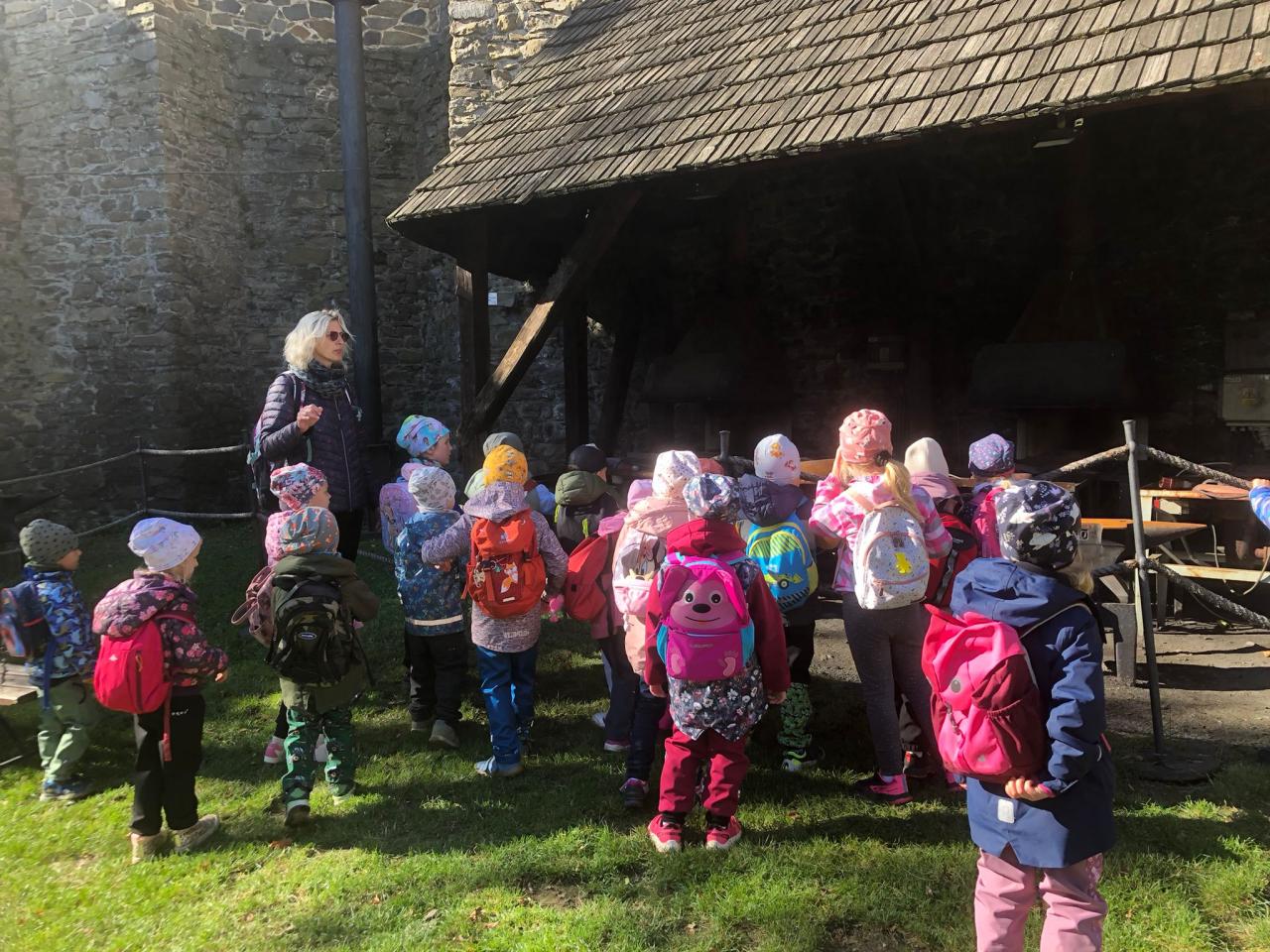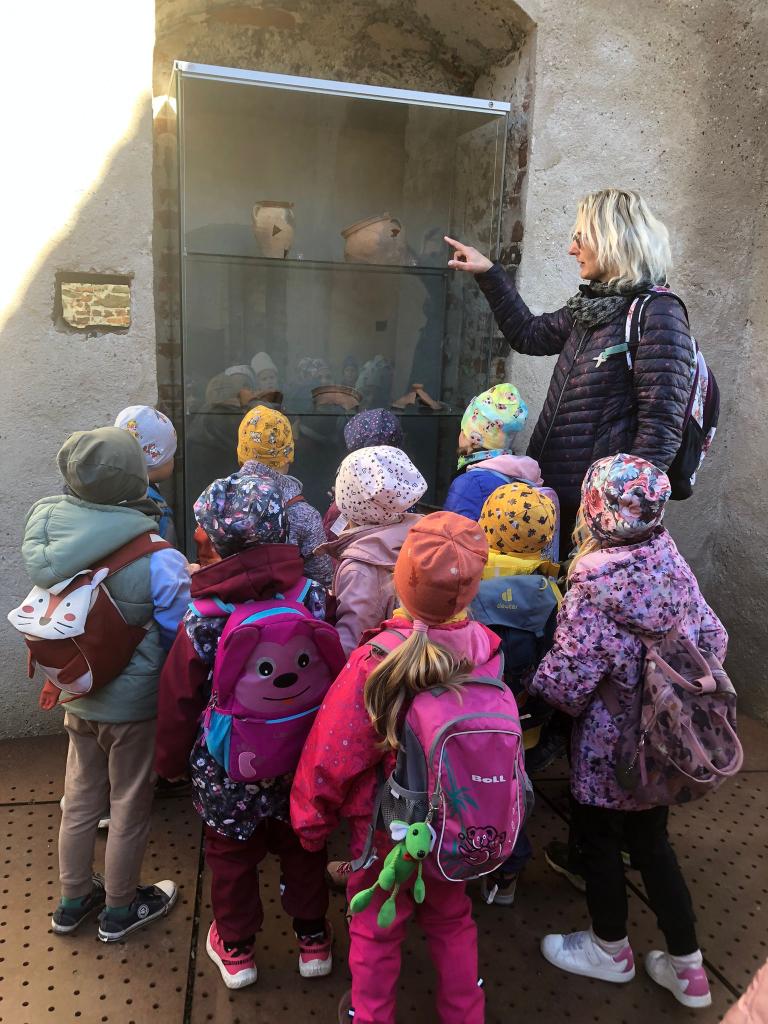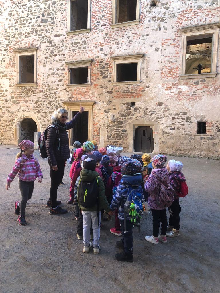 Děti prozkoumaly zákoutí hradu, smyslově vnímaly stavbu, materiál a rozšiřovaly si slovní zásobu o nová slova, dnes již nepoužívaná.