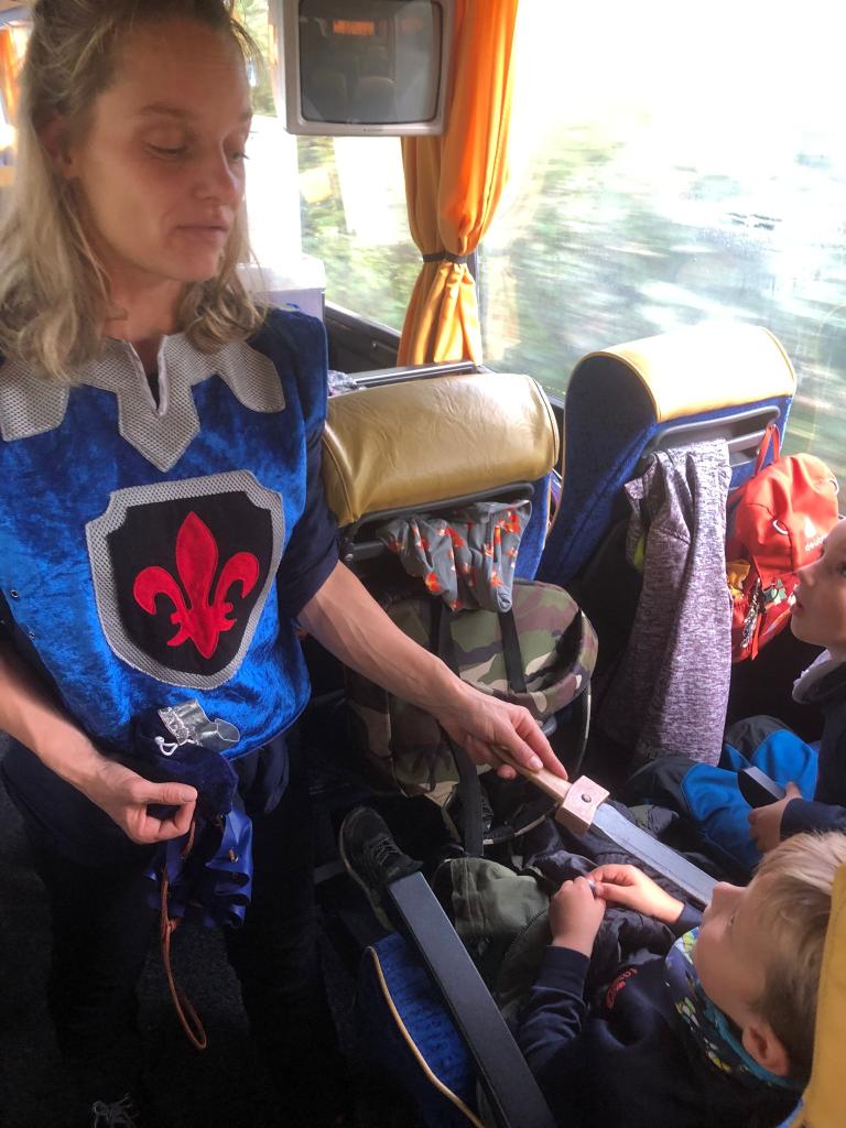Cestou nás doprovázel rytíř Bronimír, který vysvětlil dětem, jaké ctnosti má mít správný rytíř.