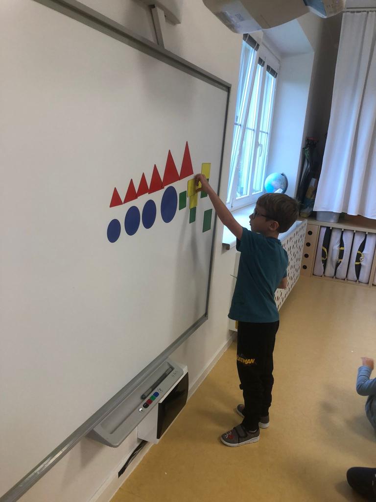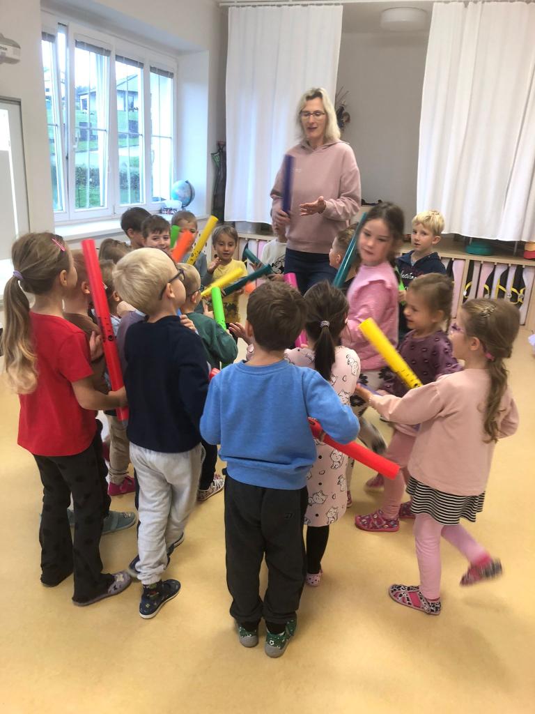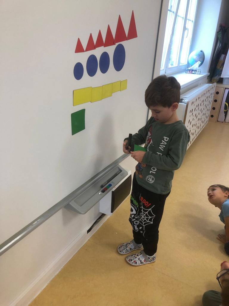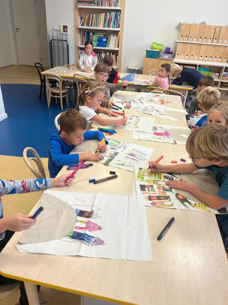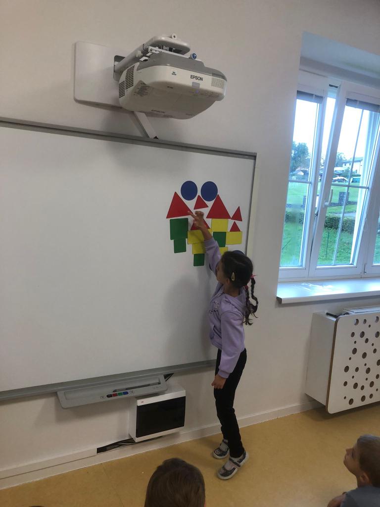 Ve třídě děti vytvářely kolektivní prostorovou práci v podobě hradního opevnění a zazpívaly si píseň To je kopec, to je hrad.