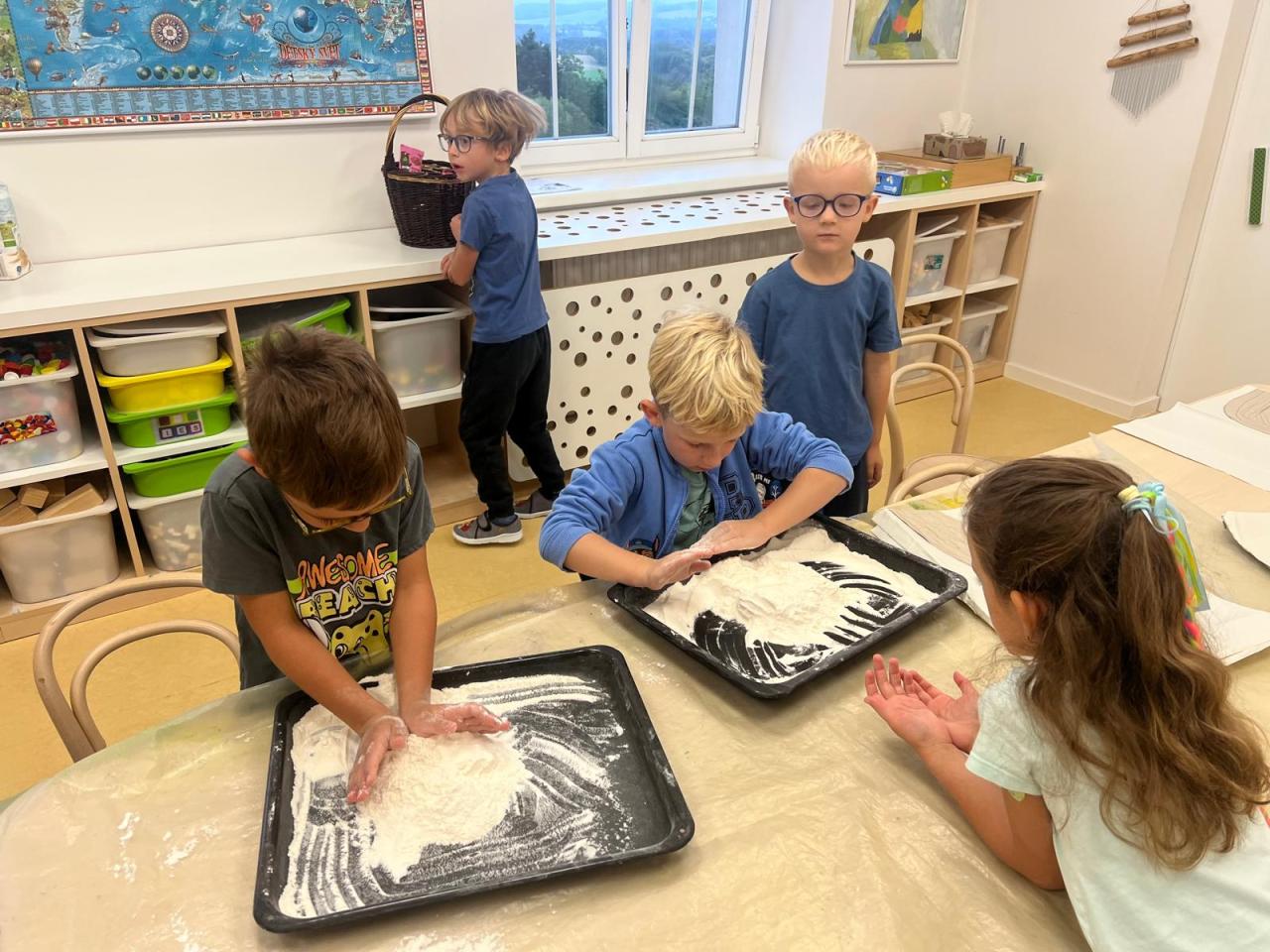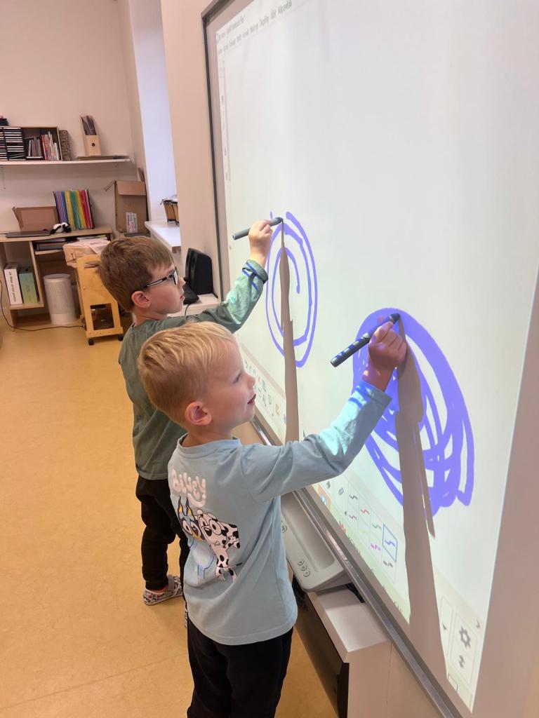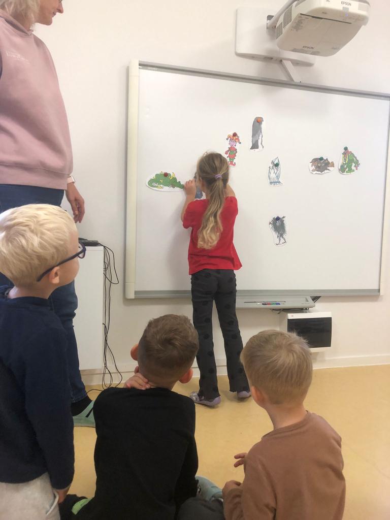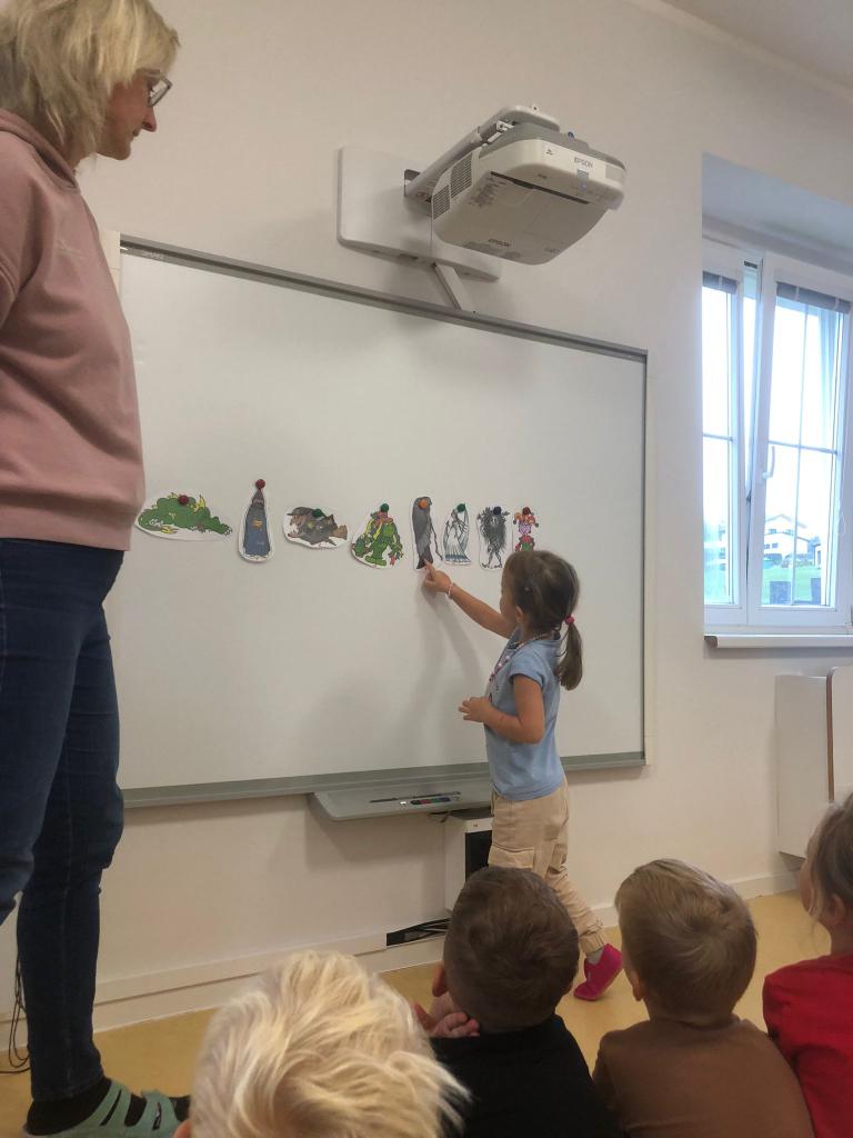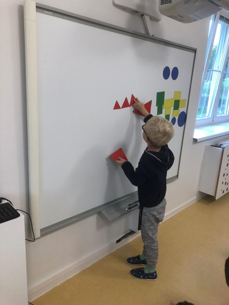 Ve třídě děti vytvářely kolektivní prostorovou práci v podobě hradního opevnění a zazpívaly si píseň To je kopec, to je hrad.