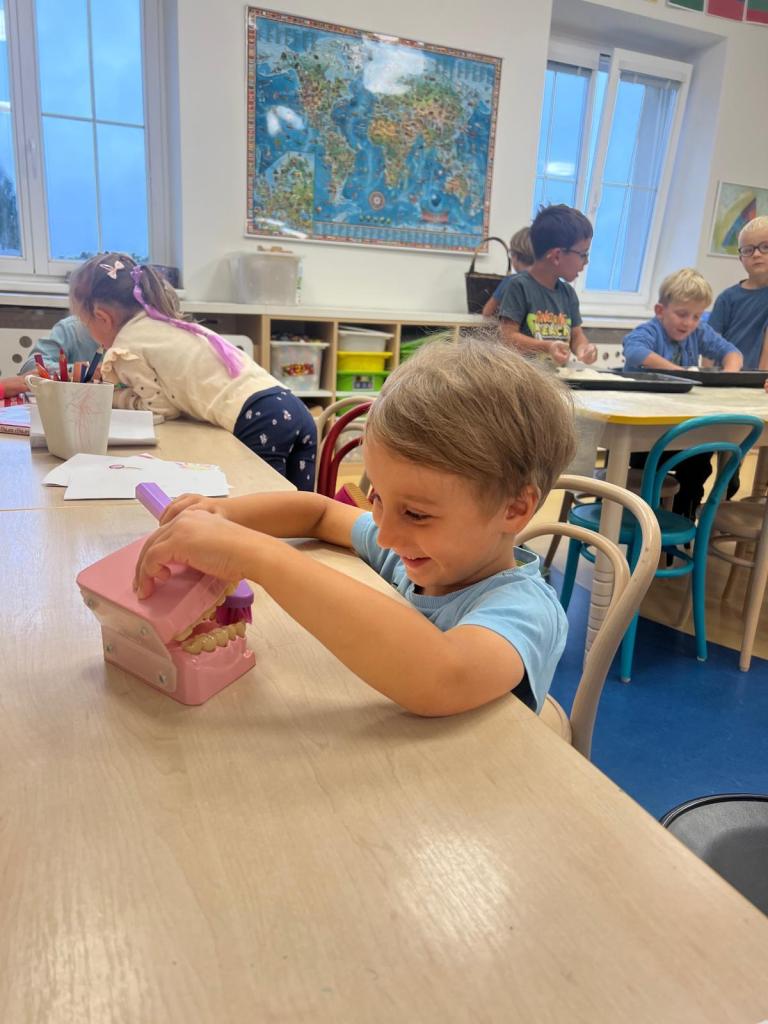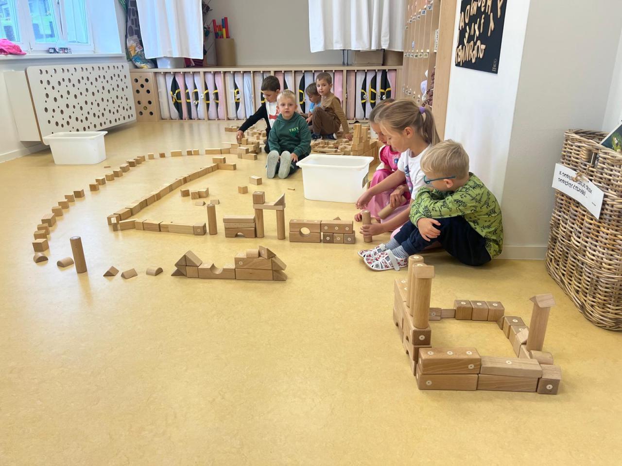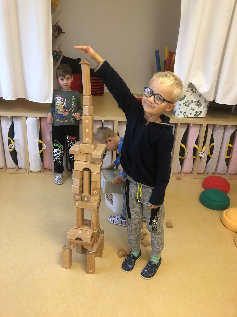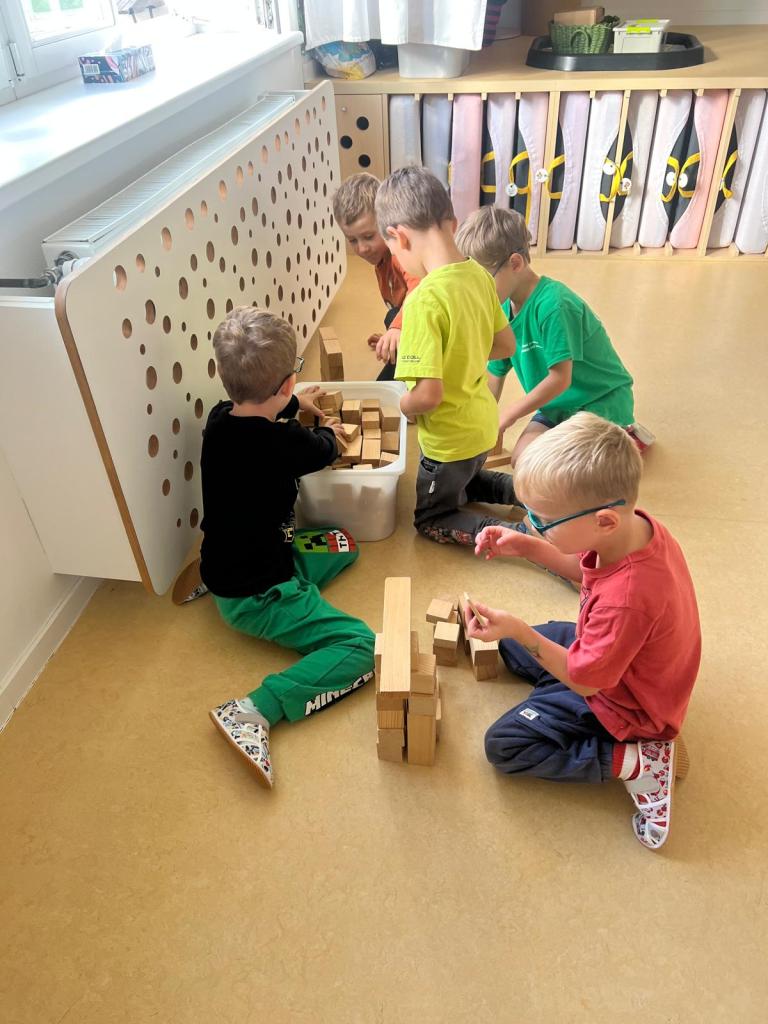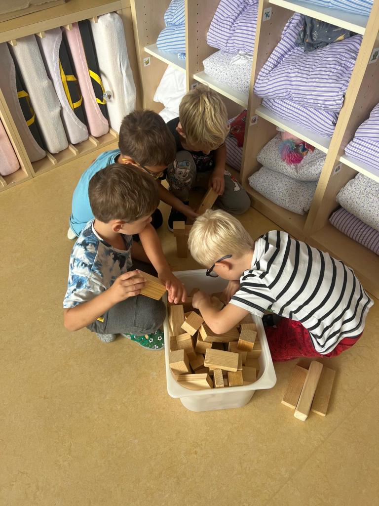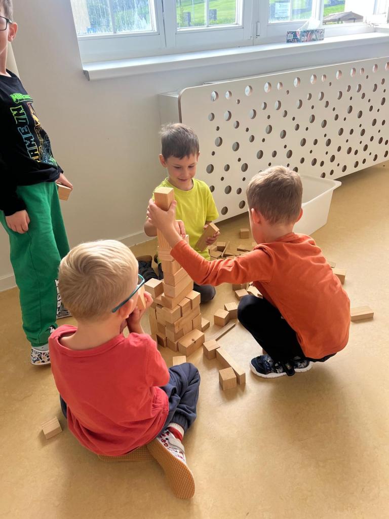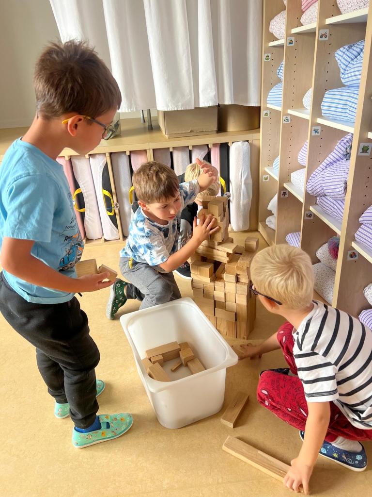 Děti ve skupině i samostatně vytvářely originální stavby v kontruktivních hrách. Přirozeně se tak učí spolupráci a komunikaci.