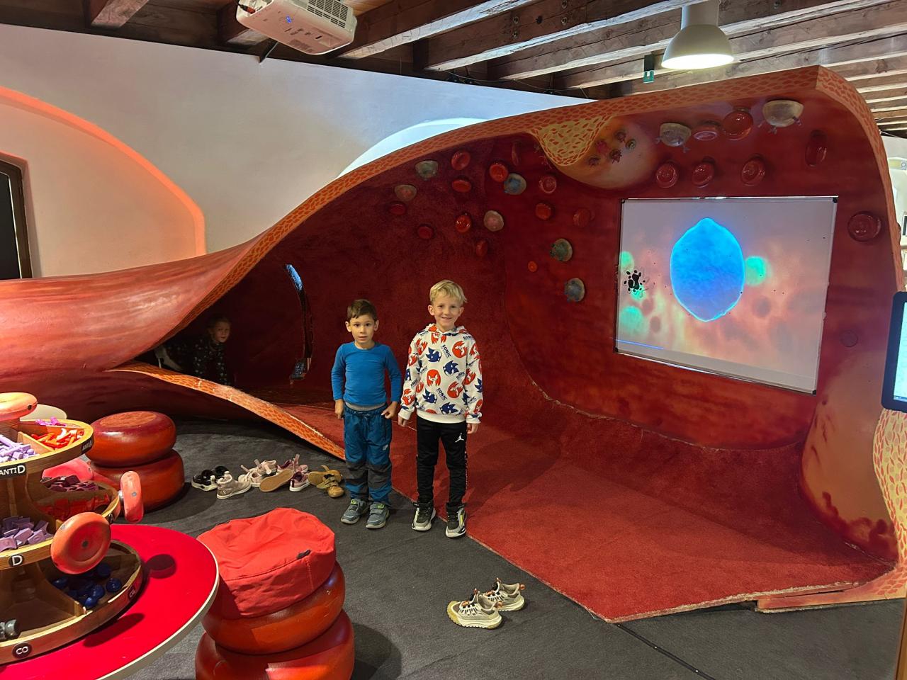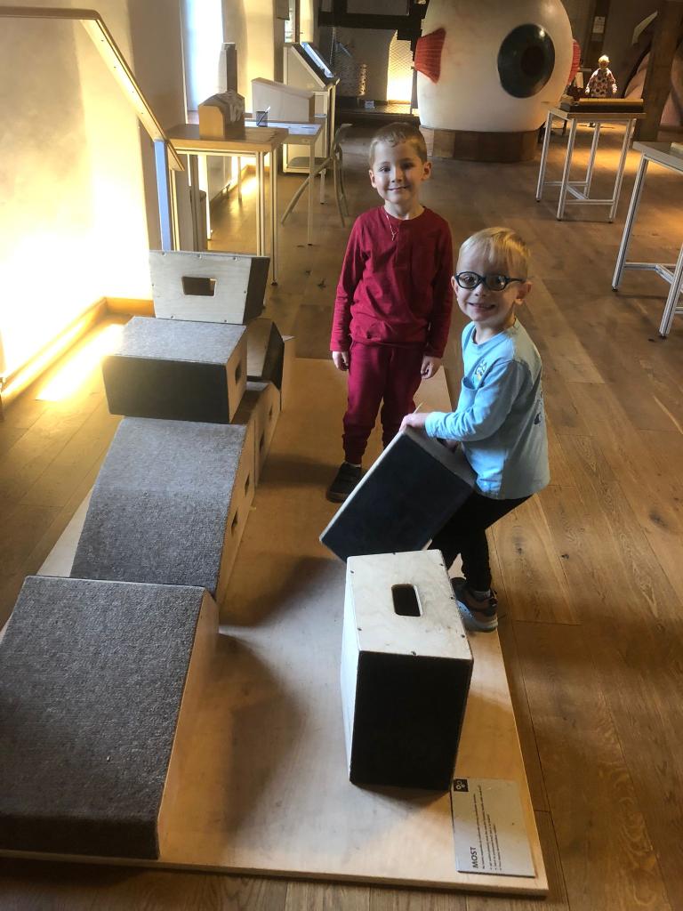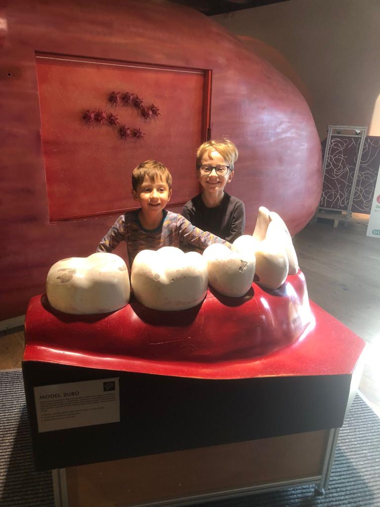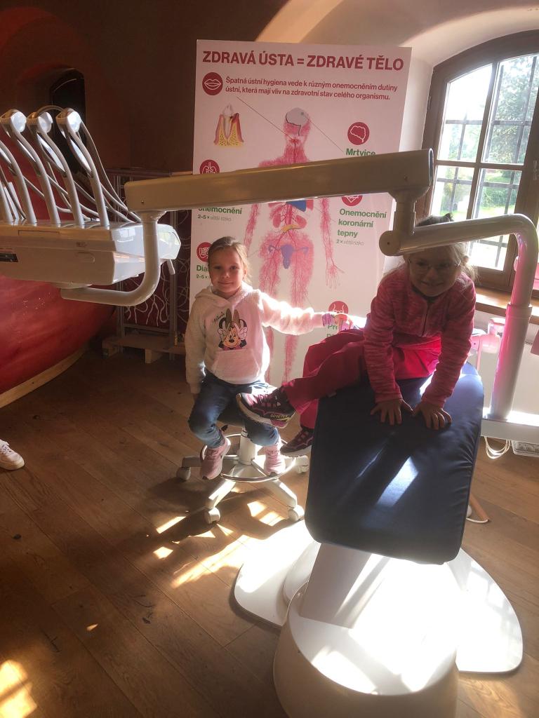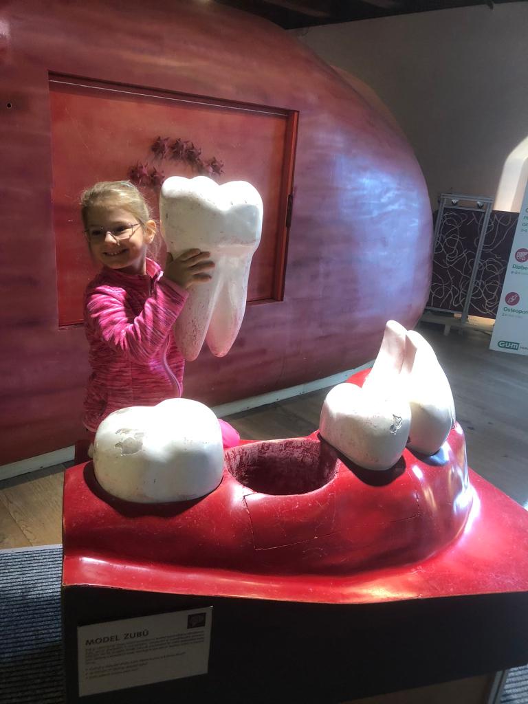 Dnes jsme s dětmi vyrazili na výlet do interaktivního muzea a zážitků Pevnost poznání. Děti měly možnost prohlédnout si zblízka makety lidských vnitřních orgánů, díky kterým se zábavnou formou dozvěděly, jak naše tělo funguje. Velkým lákadlem bylo také zubařské křeslo, do kterého si každý mohl na chvíli sednout a představit si, jaké to je být v ordinaci. Nechyběly ani logické úkoly a hlavolamy, které děti vyzkoušely s velkým nadšením a často i s notnou dávkou trpělivosti a vynalézavosti.