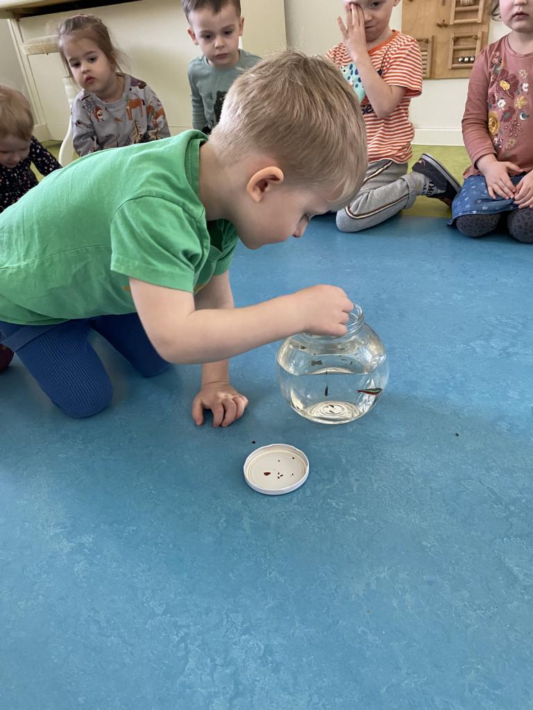 Celý týden jsme proplétali pohybovými hrami a aktivitami. Dětem ve třídě přibyli 2 noví kamarádi-rybky, které musely krmit. Tuto úlohu zvládly bez problémů. Nechyběl ani pokus – Filtrace, kde se děti dozvěděly princip čistění vody a sami si to vyzkoušely.