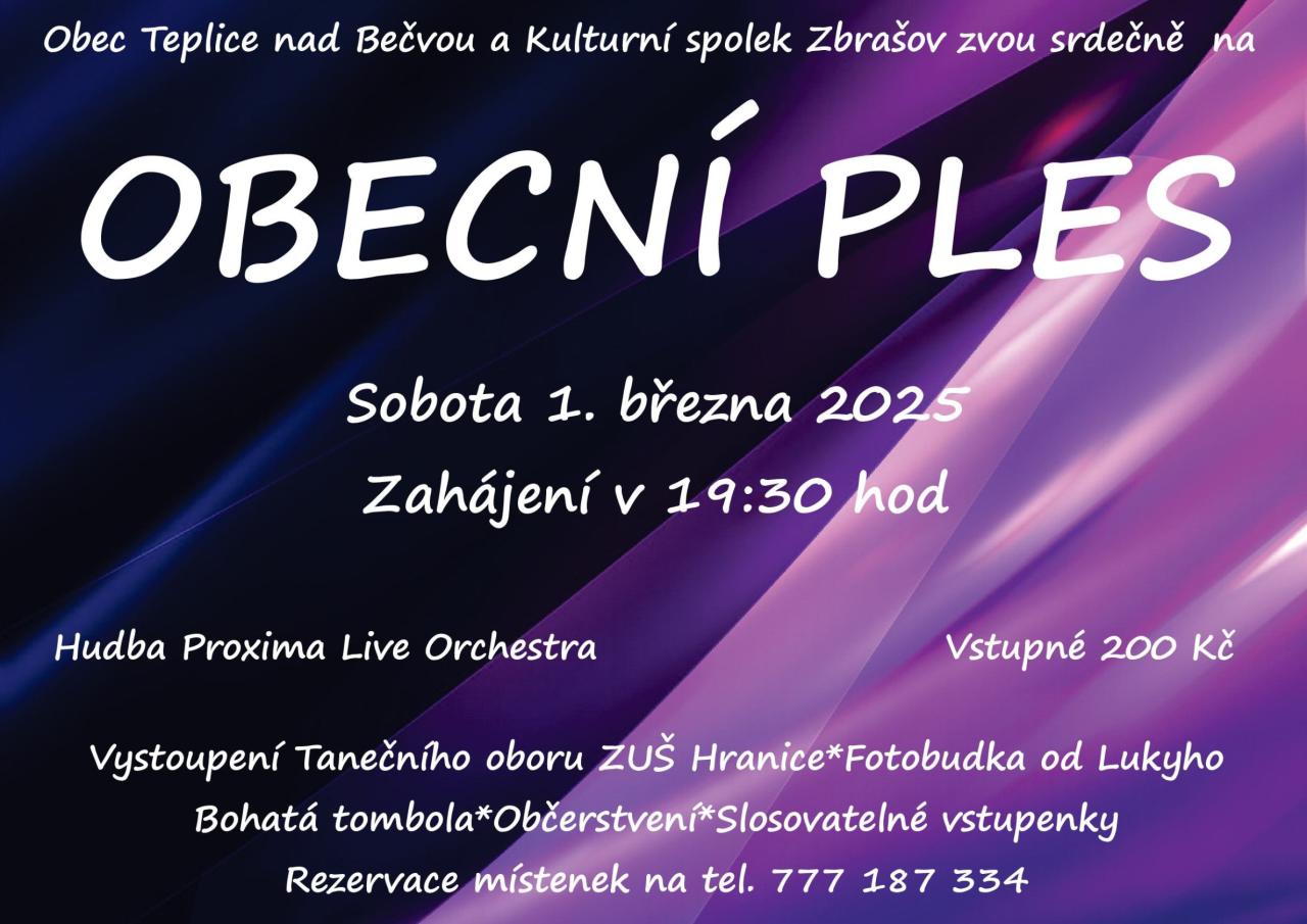 Místo konání: Kulturní dům Zbrašov, č. p. 99, Teplice nad Bečvou, 753 01